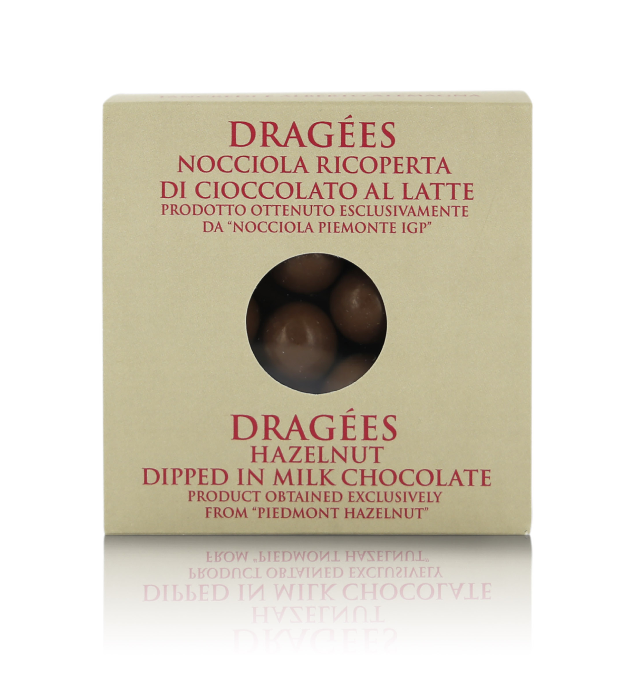 Una moderna confezione a forma di cubo, grazie ad alcuni lati trasparenti, lascia intravedere queste deliziose Nocciole Piemonte I.G.P. ricoperte di cioccolato al latte. I Dragées classici alla frutta secca di T'a Milano, realizzati con cioccolato artigianale, sono perfetti da offrire ai vostri ospiti insieme al caffè o come piccolo regalo per gli amanti della piccola pasticceria.