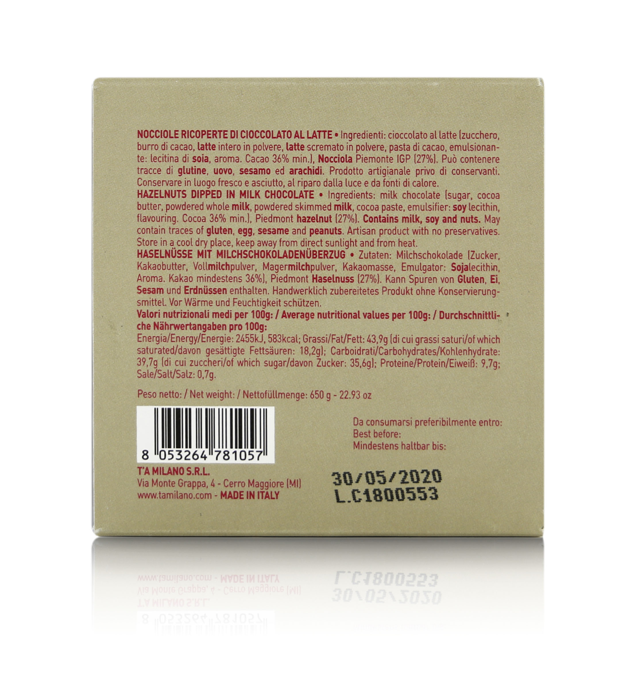 T'a Milano Dragées con Nocciola Piemonte IGP ricoperta di cioccolato al latte 36%, Praline con frutta secca - 650g