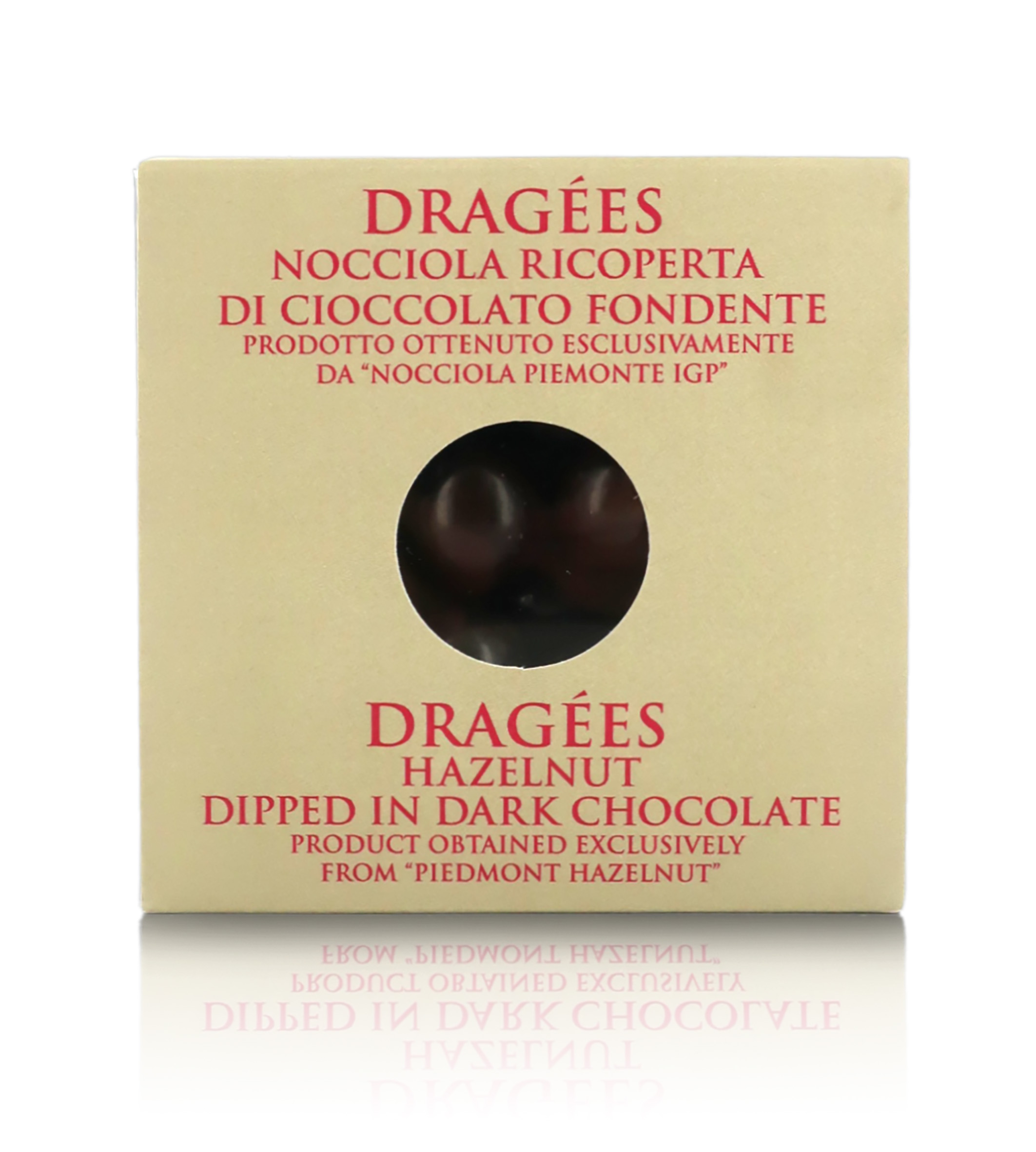 Una moderna confezione a forma di cubo, grazie ad alcuni lati trasparenti, lascia intravedere queste deliziose Nocciole Piemonte I.G.P. ricoperte di cioccolato fondente. I Dragées classici alla frutta secca di T'a Milano, realizzati con cioccolato artigianale, sono perfetti da offrire ai vostri ospiti insieme al caffè o come piccolo regalo per gli amanti della piccola pasticceria.