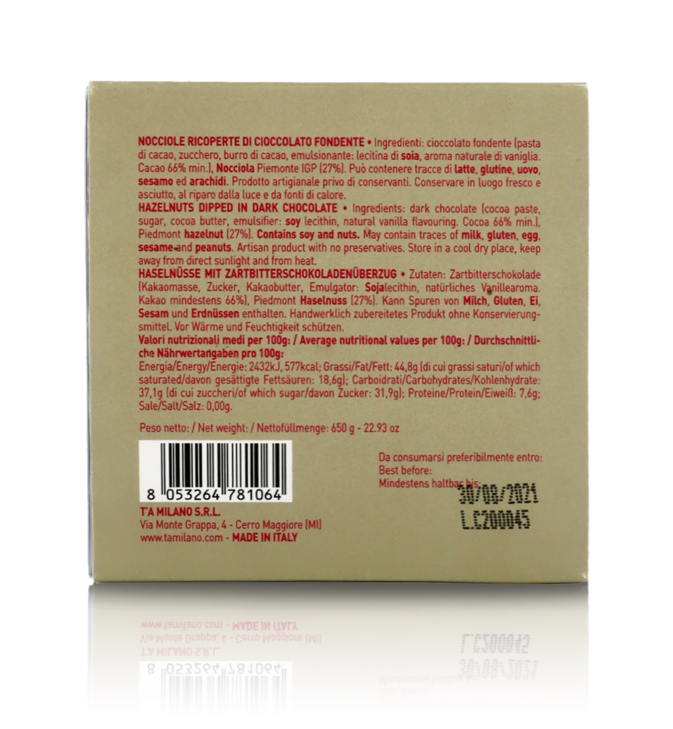 T'a Milano Dragées con Nocciola Piemonte IGP ricoperta di cioccolato fondente 66%, Praline con frutta secca - 650g