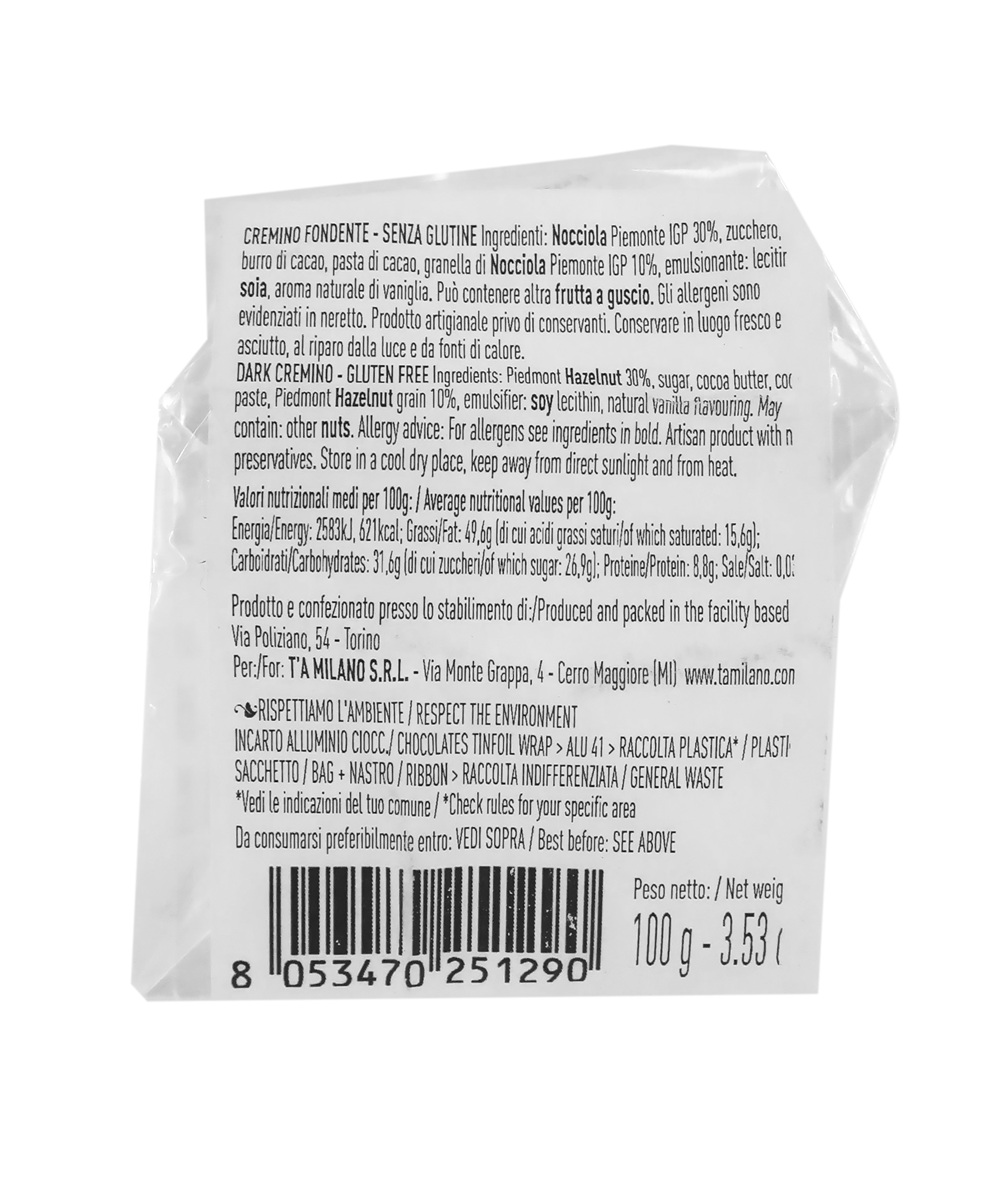 T’a Milano presenta i "Piccoli Assaggi di Cremini", che rendono omaggio al tipico cioccolatino della tradizione piemontese, noto e amato in tutto il mondo. Questa particolare versione di "Assaggio" celebra la variante di cremino al cioccolato fondente, dedicato agli amanti del gusto deciso del fondente.