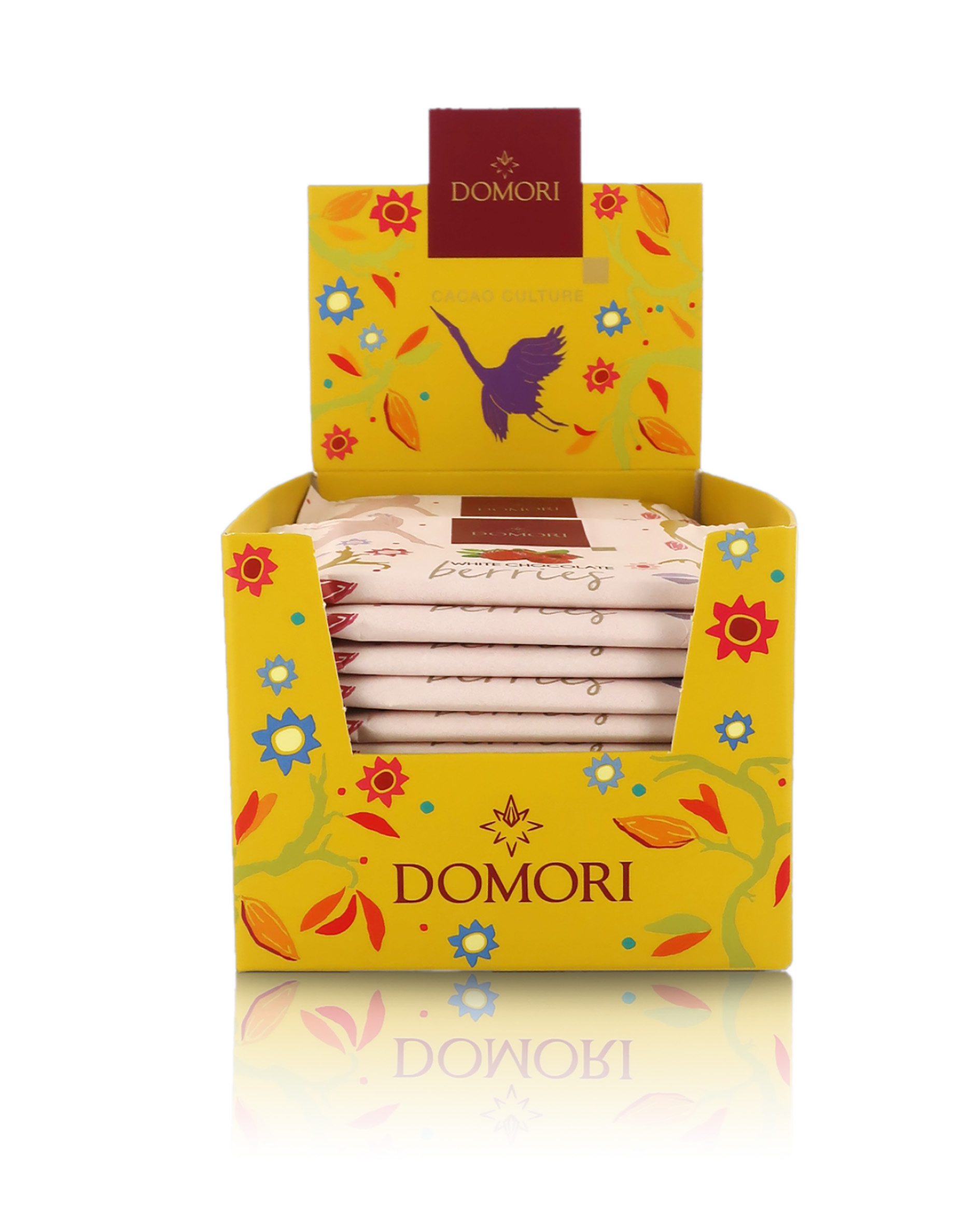 Il fine cioccolato bianco Domori incontra i frutti rossi disidratati e vaniglia naturale, creando una tavoletta di cioccolato gourmet senza coloranti e aromi artificiali.
