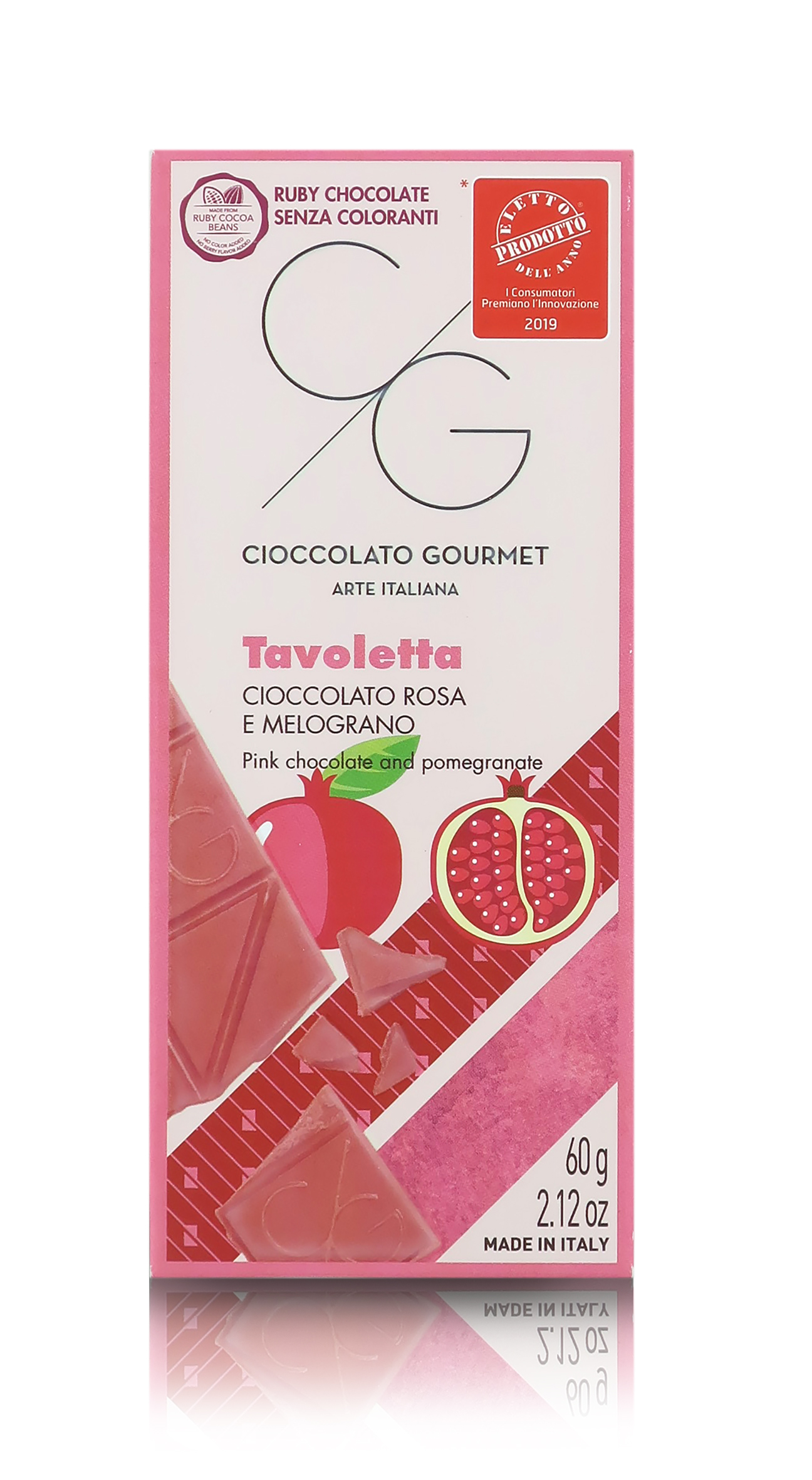 CG Tavoletta Di Cioccolato Gourmet, Barretta di Cioccolato Rosa Ruby al Melograno, Tavoletta di Cioccolato alla Frutta, Cioccolato Gusto Melograno, 60 Grammi