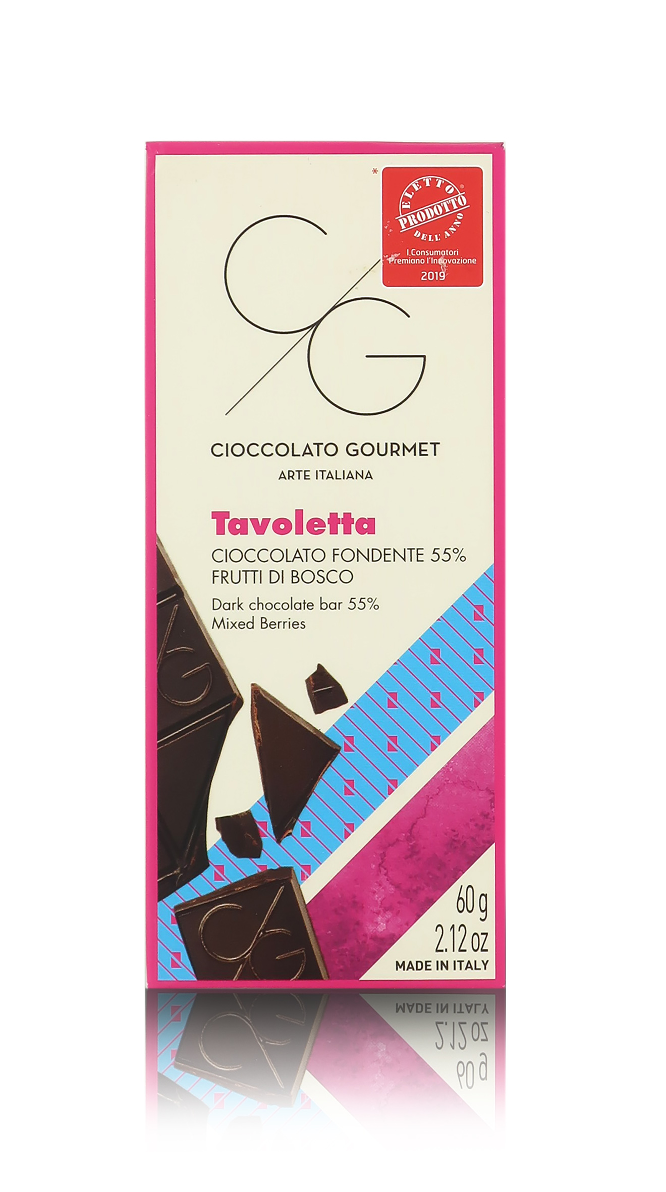 CG Tavoletta Di Cioccolato Gourmet, Cioccolato Fondente 55% Ai Frutti Di Bosco, 60g