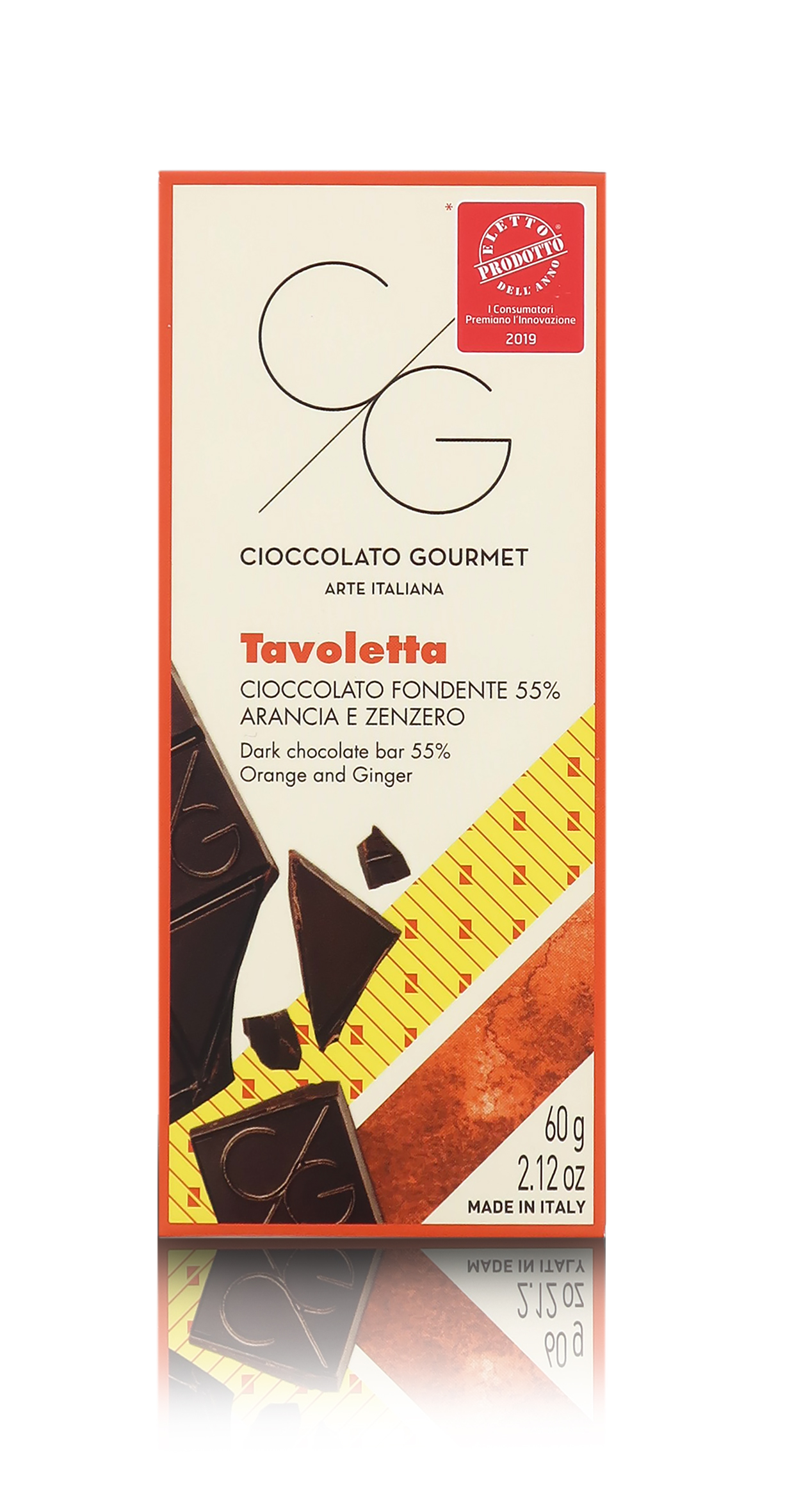 CG Tavoletta Di Cioccolato Gourmet, Cioccolato Fondente 55% All'Arancia e Zenzero, 60 Grammi