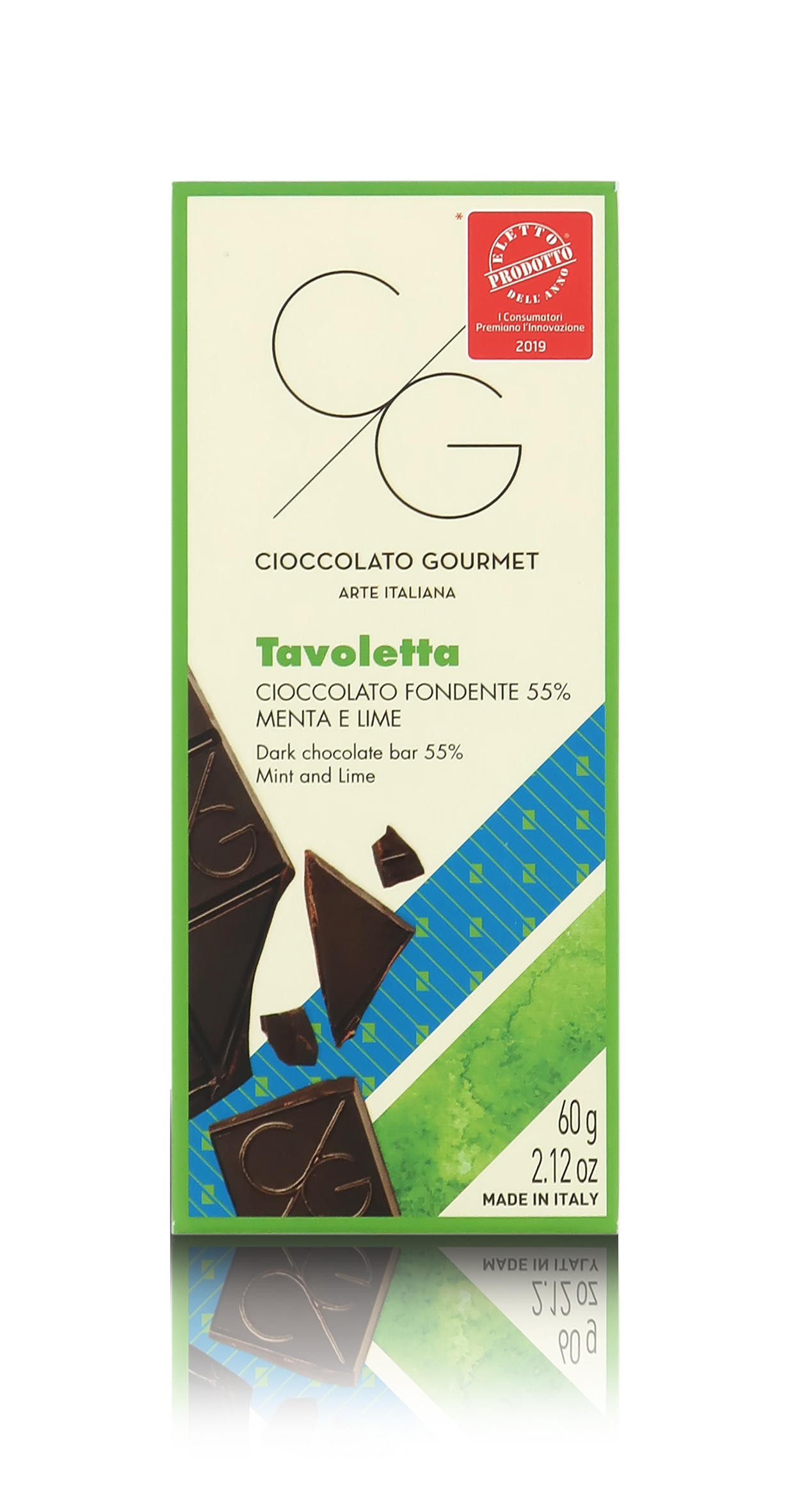 CG Tavoletta Di Cioccolato Gourmet, Cioccolato Fondente 55% Alla Menta E Lime, 60 Grammi