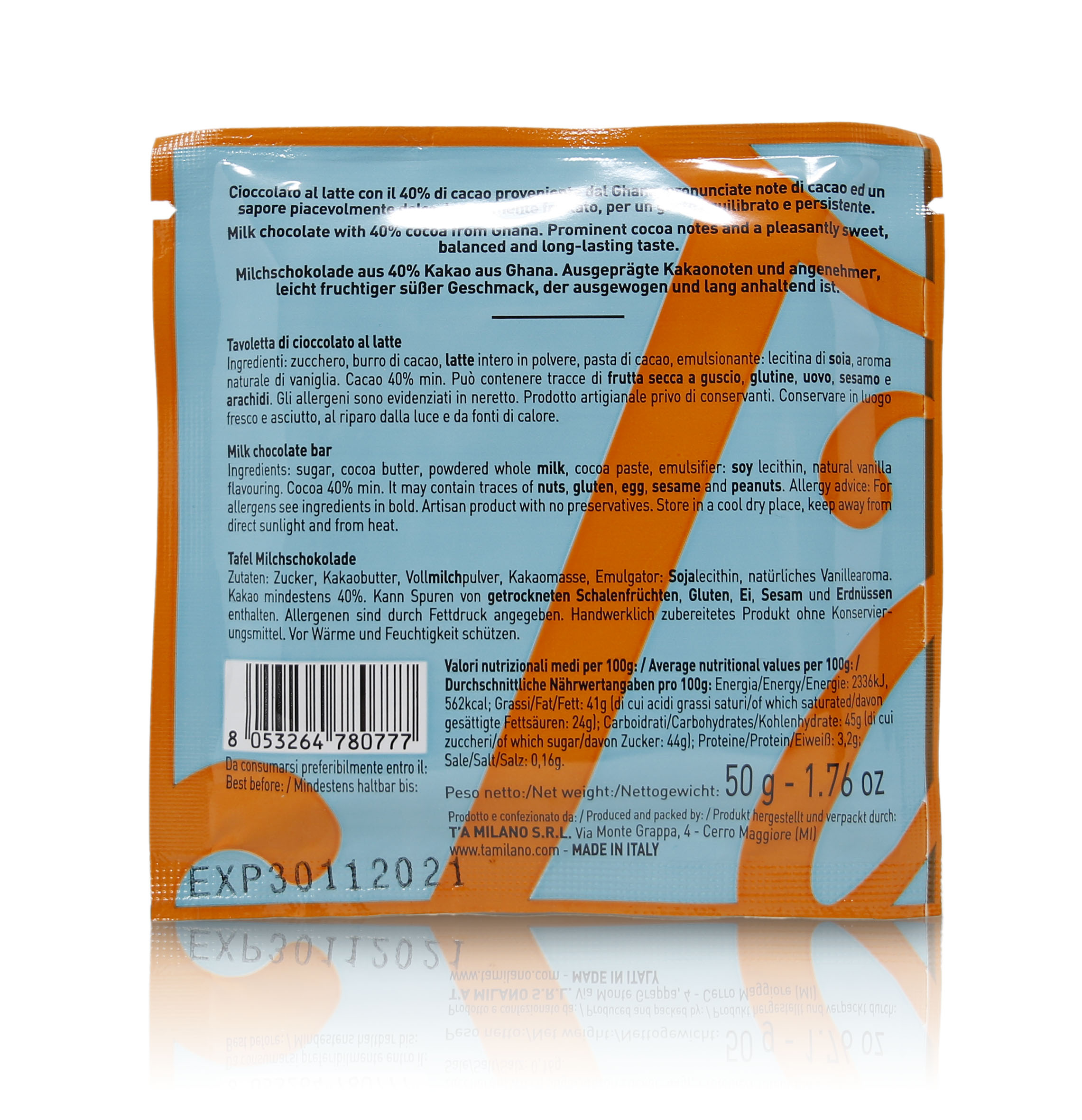 T'a Milano Tavoletta di cioccolato al latte, cacao min. 40% - 50g