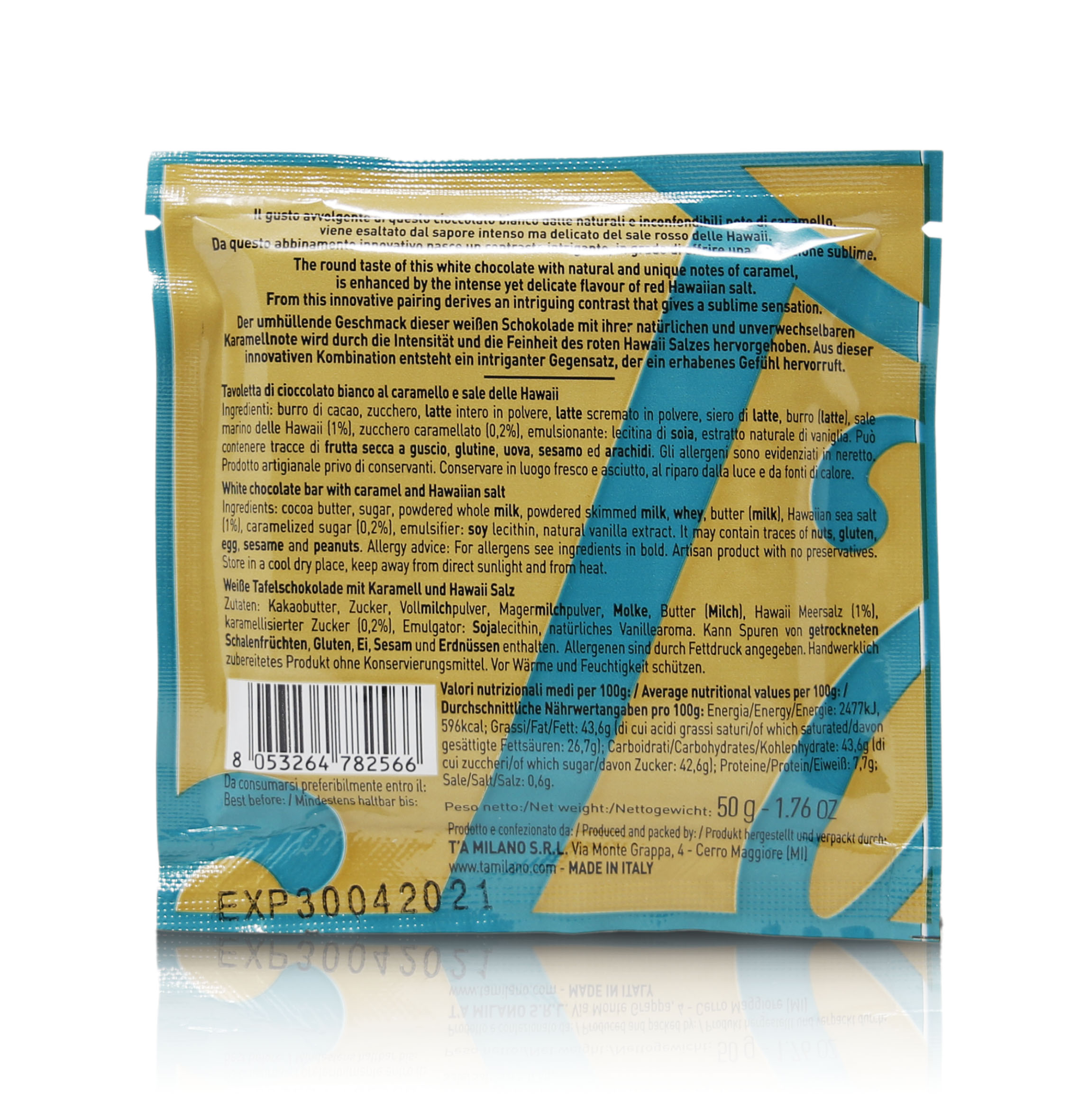 T'a Milano Tavoletta di cioccolato bianco al caramello e sale delle Hawaii - 50g