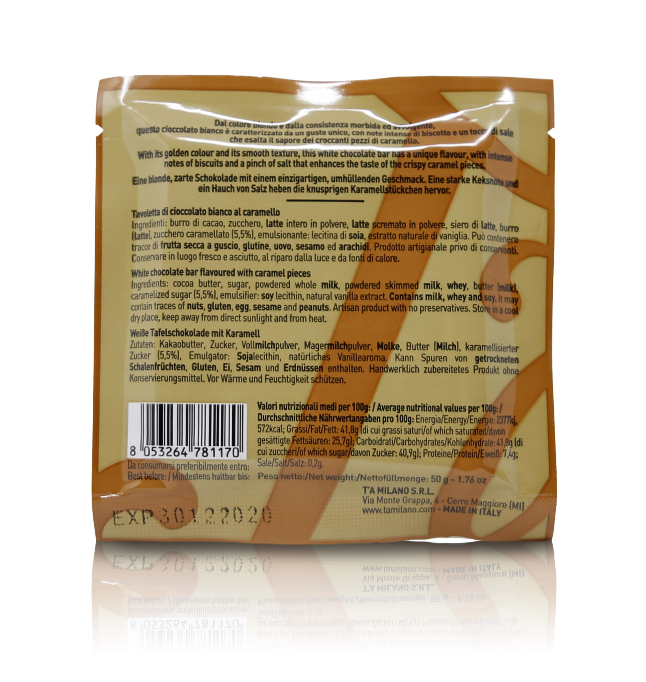 T'a Milano Tavoletta di cioccolato bianco con croccanti pezzi di caramello - 50g