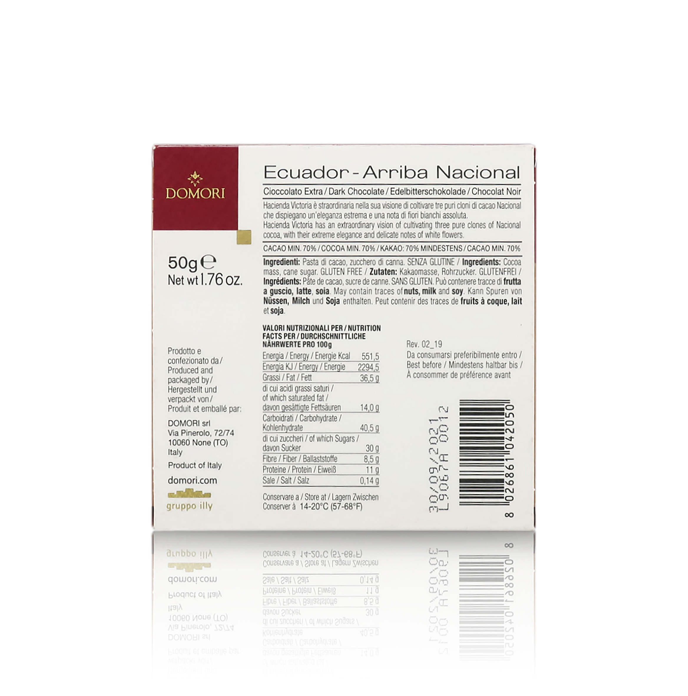 La tavoletta di cacao Nacional 70% "Ecuador" è realizzata con cacao proveniente dalla Hacienda Victoria in Ecuador, impegnata nella coltivazione di cacao aromatico e volta a preservare la varietà chiamata "Arriba Nacional". Questo cioccolato ecuadoregno regala una rotondità straordinaria e note aromatiche di fiori bianchi, frutta essiccata e spezie. Grazie a tali caratteristiche, risulta essere uno tra i cacao più apprezzati del mondo.