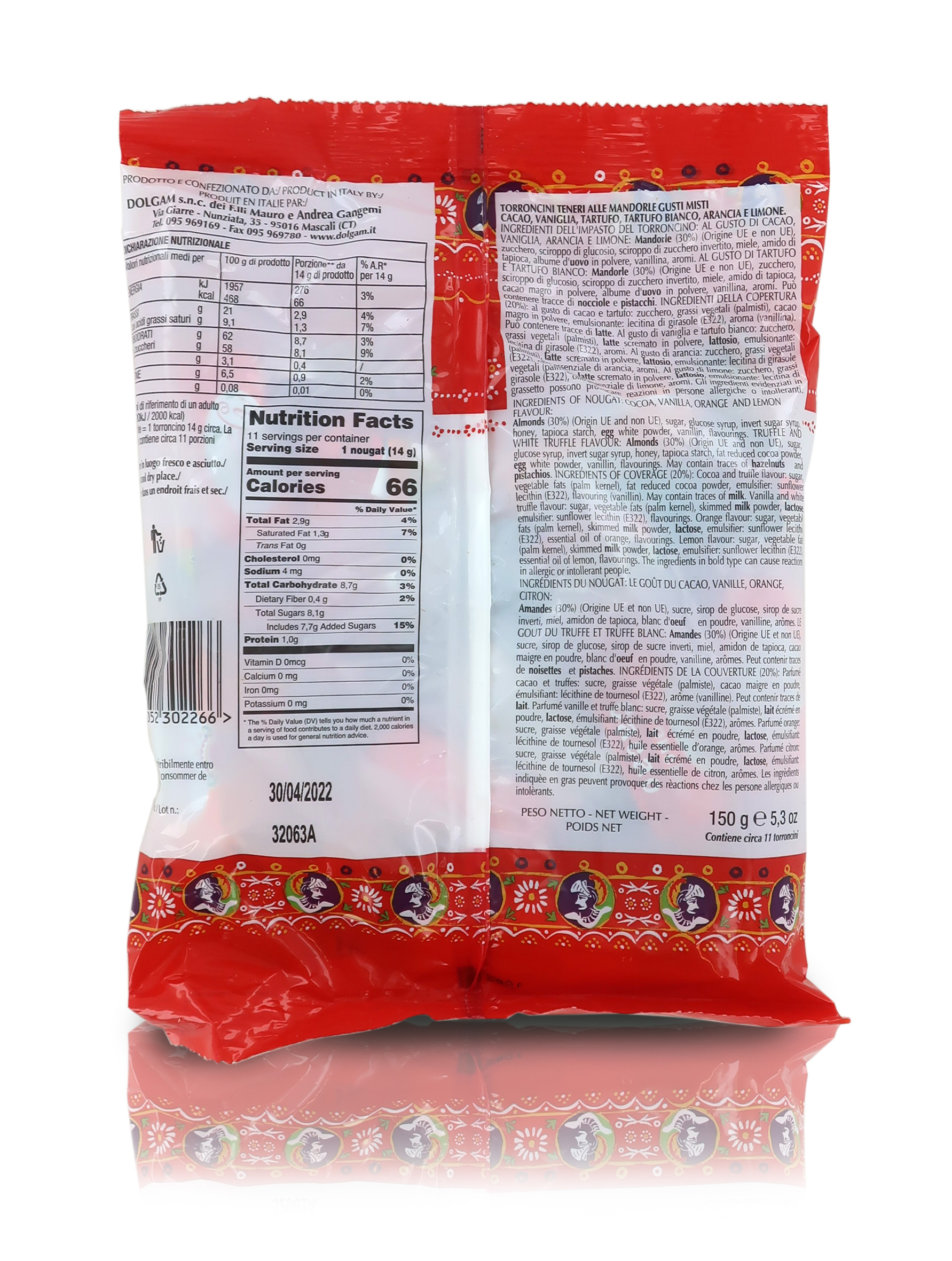 Torroncini Morbidi Alle Mandorle, ''I Siciliani'', Con Copertura Gusto Vaniglia, Cioccolato, Tartufo Nero E Bianco, Arancia E Limone, 36 Buste da 150g L'Una