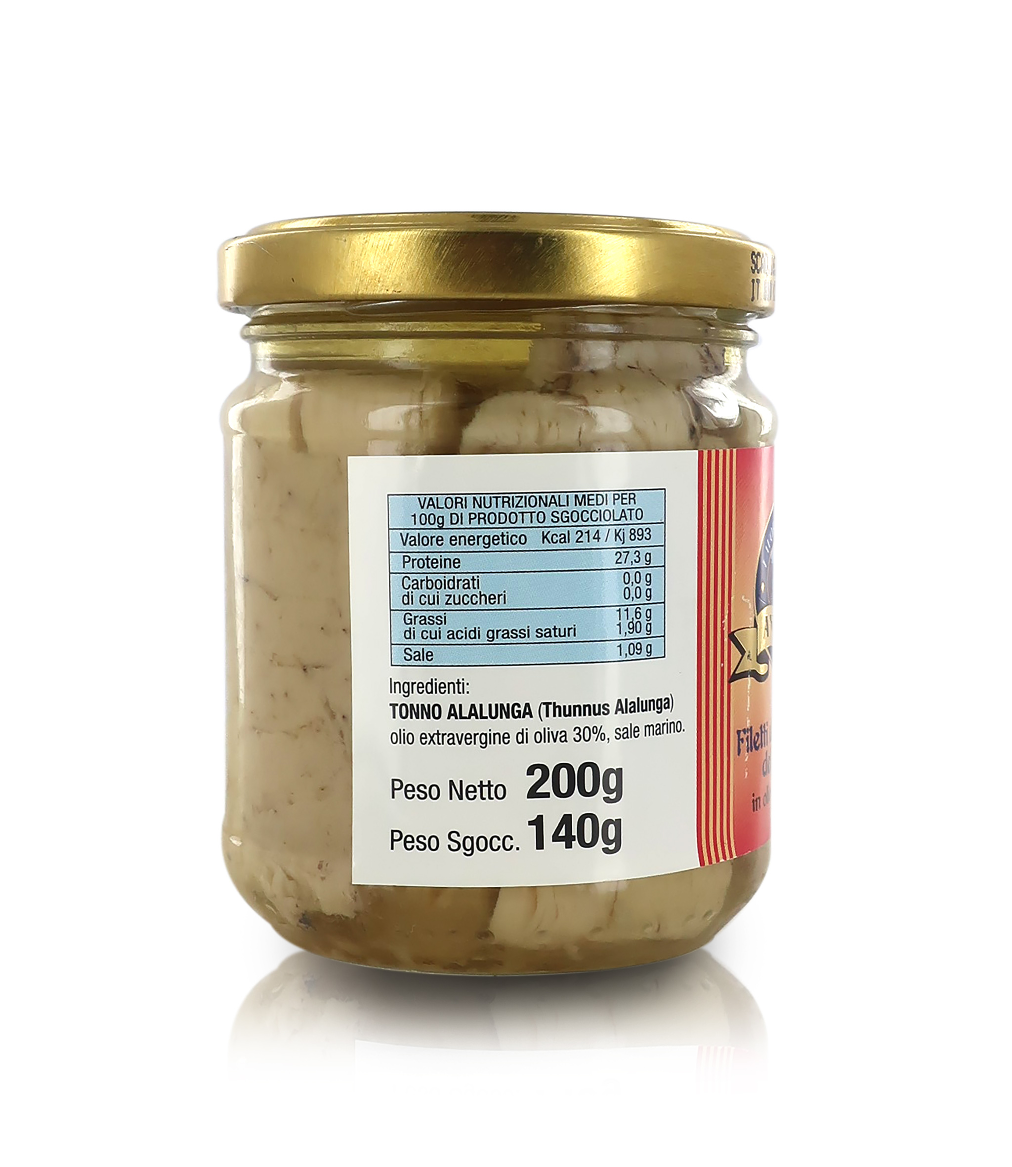 Tonnetto Alalunga Del Mediterraneo In Olio Extravergine D'Oliva, Vasetto Di Vetro, 200 Grammi