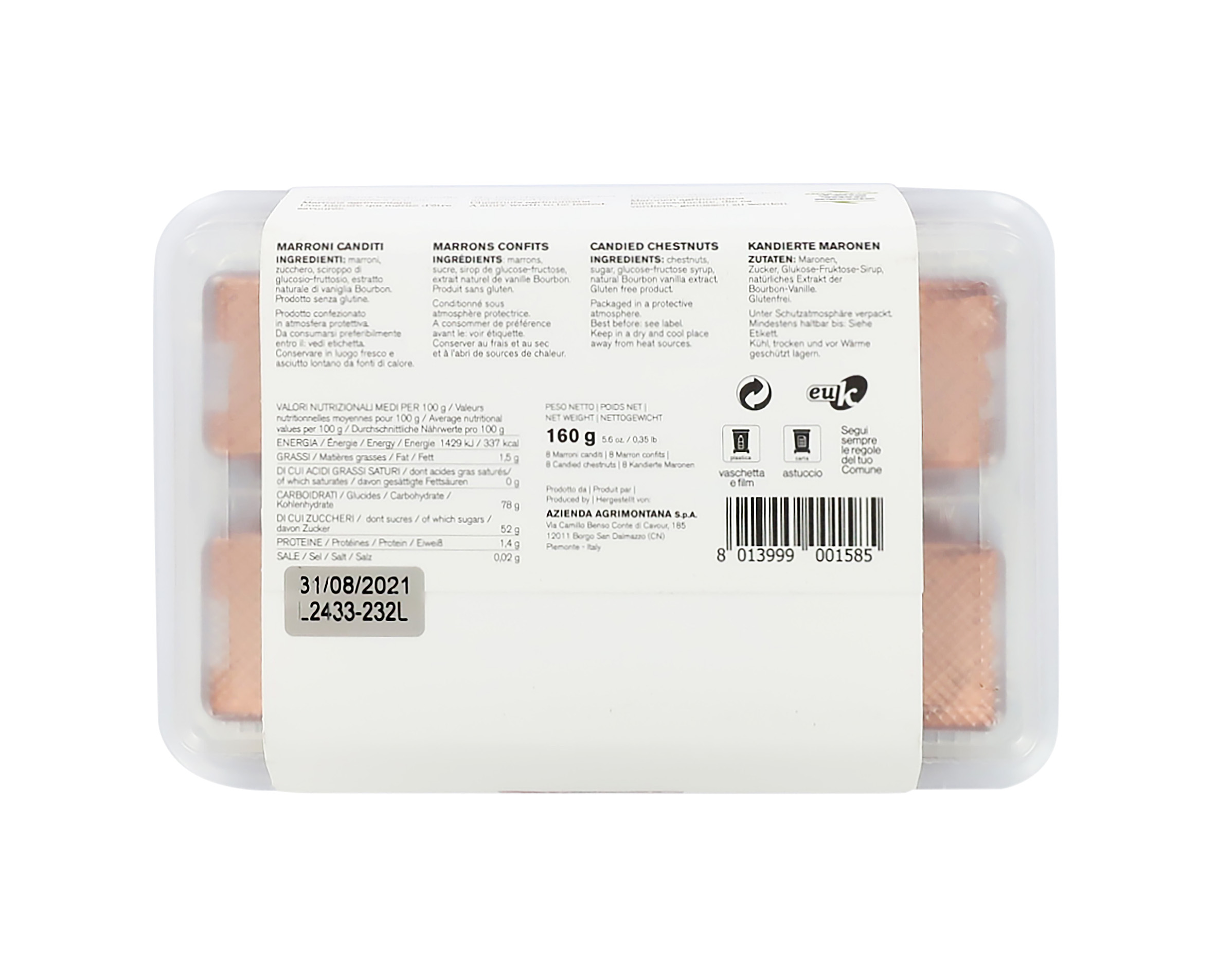 Agrimontana Marroni Canditi, Confezione Con Vaschetta da 8 Marroni Canditi Incartati Singolarmente, Linea ''I Classici'', 160 Grammi