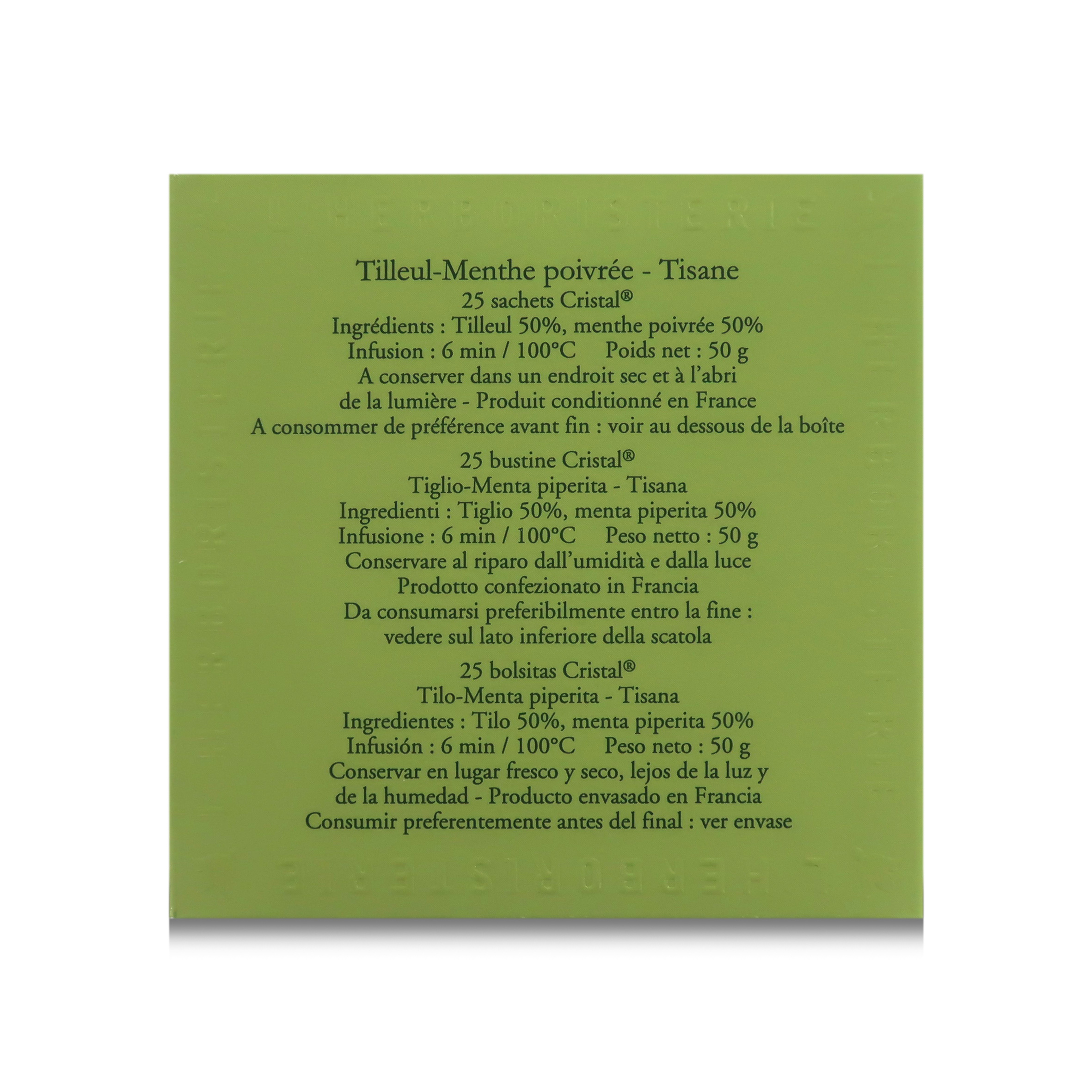 La tisana alla menta e tiglio di Dammann Frères è contenuta in esclusive e pratiche bustine "Cristal".