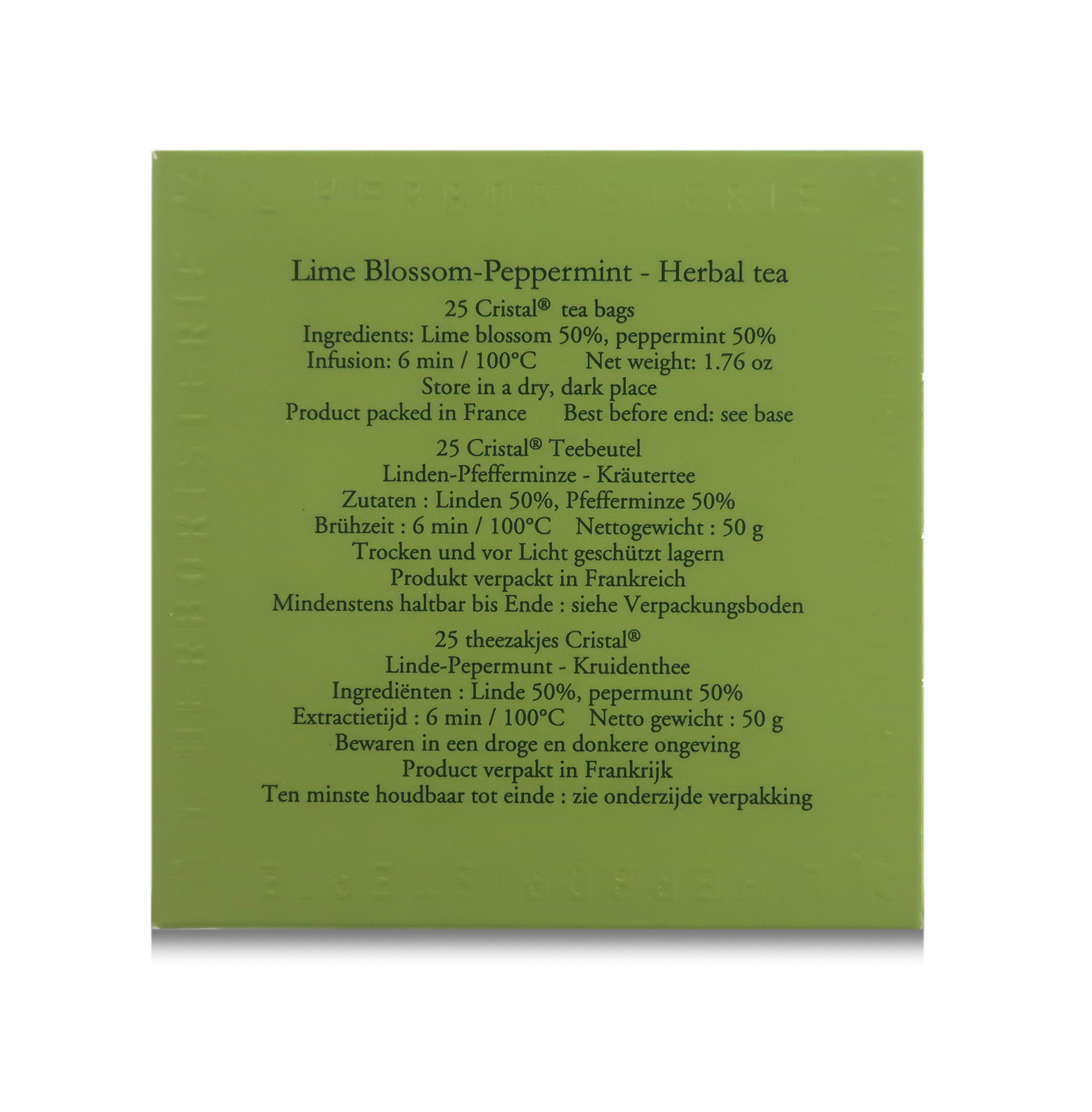 Tisana al tiglio e menta, delicata e vivace allo stesso tempo. Con note dominanti di erbe aromatiche e sapori principali di tiglio e menta.