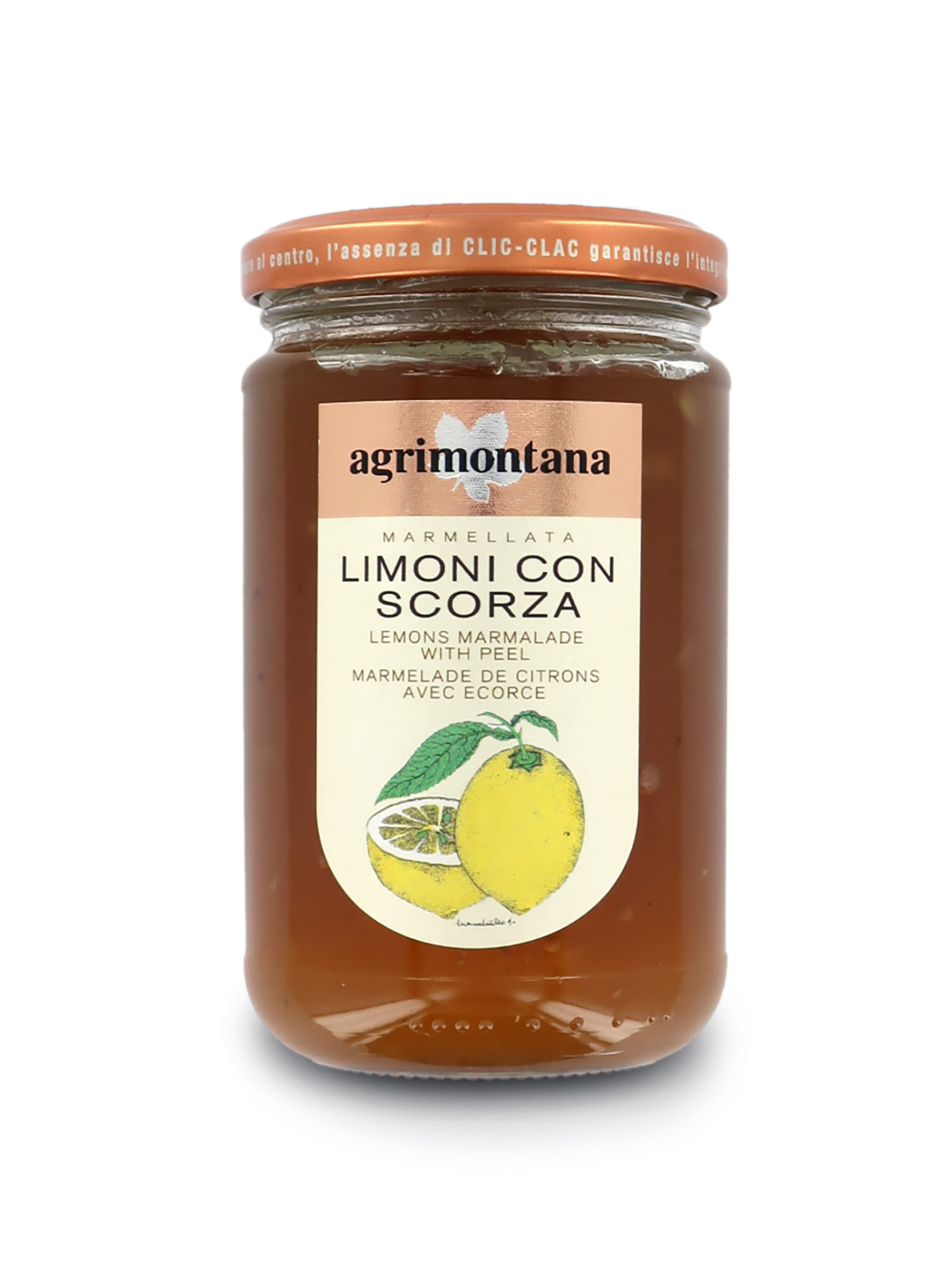 Confettura extra di limoni di Sicilia in vasetto da 350 grammi.