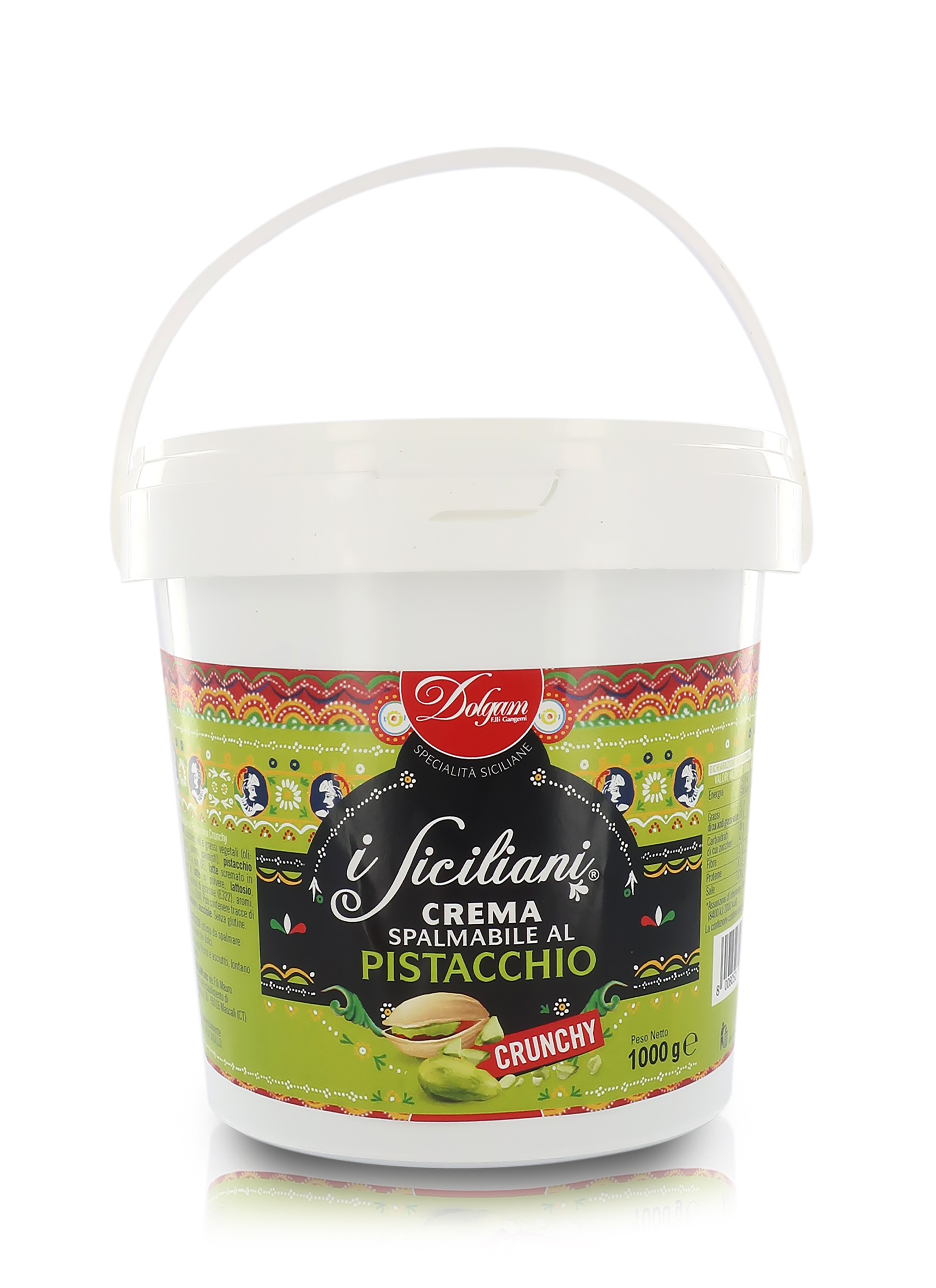 Crema spalmabile al pistacchio, arricchita da pezzettini di pistacchi, prodotta in provincia di Catania (Italia).