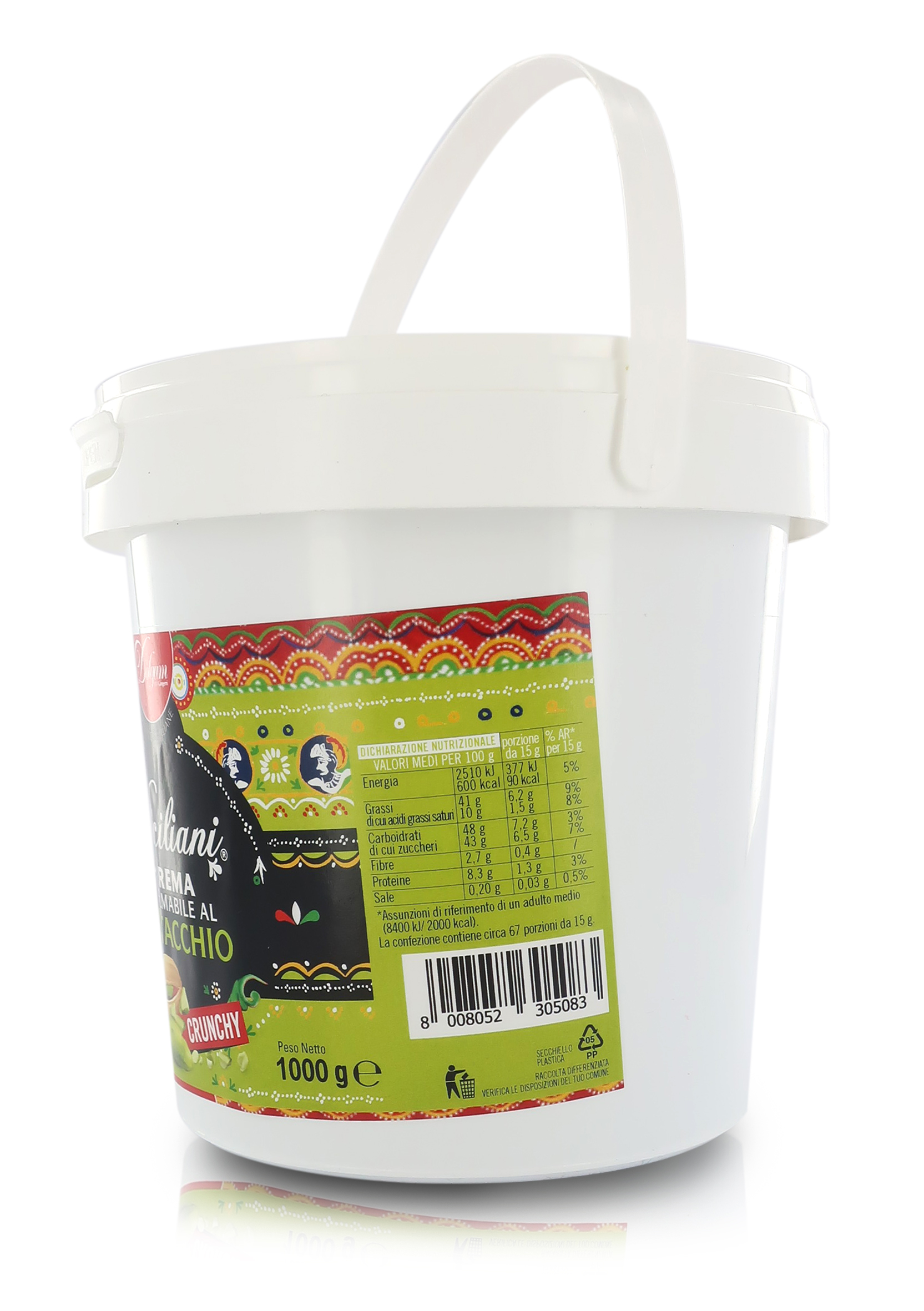 Crema Spalmabile Al Pistacchio Con Granella Di Pistacchio [Crunchy], Prodotta In Italia, I Siciliani, Secchiello Da 1 Kg
