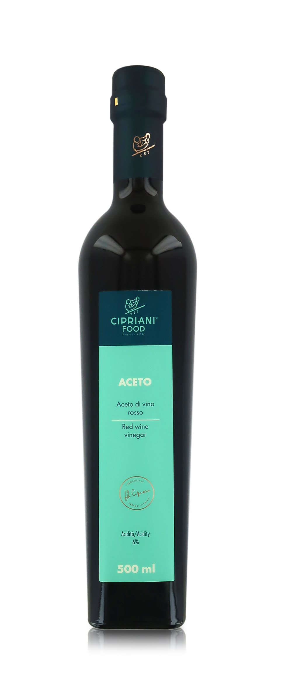 Aceto di vino rosso Cipriani, bottiglia da 500ml.
