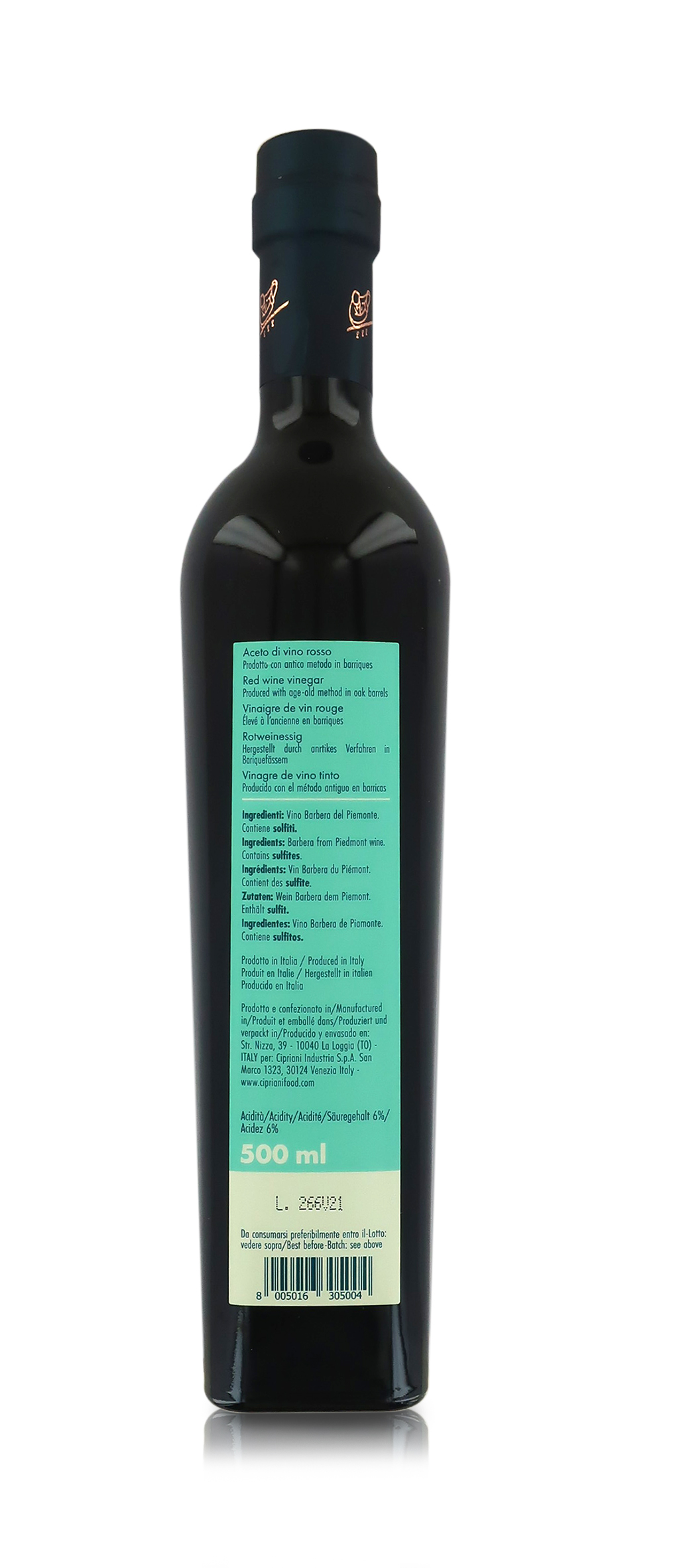 Cipriani Aceto di Vino Rosso Italiano Invecchiato in Botti di Rovere e Ottenuto da Procedimento Antico / Tradizionale, Aceto Aromatico a Bassa Acidità , 500 Ml