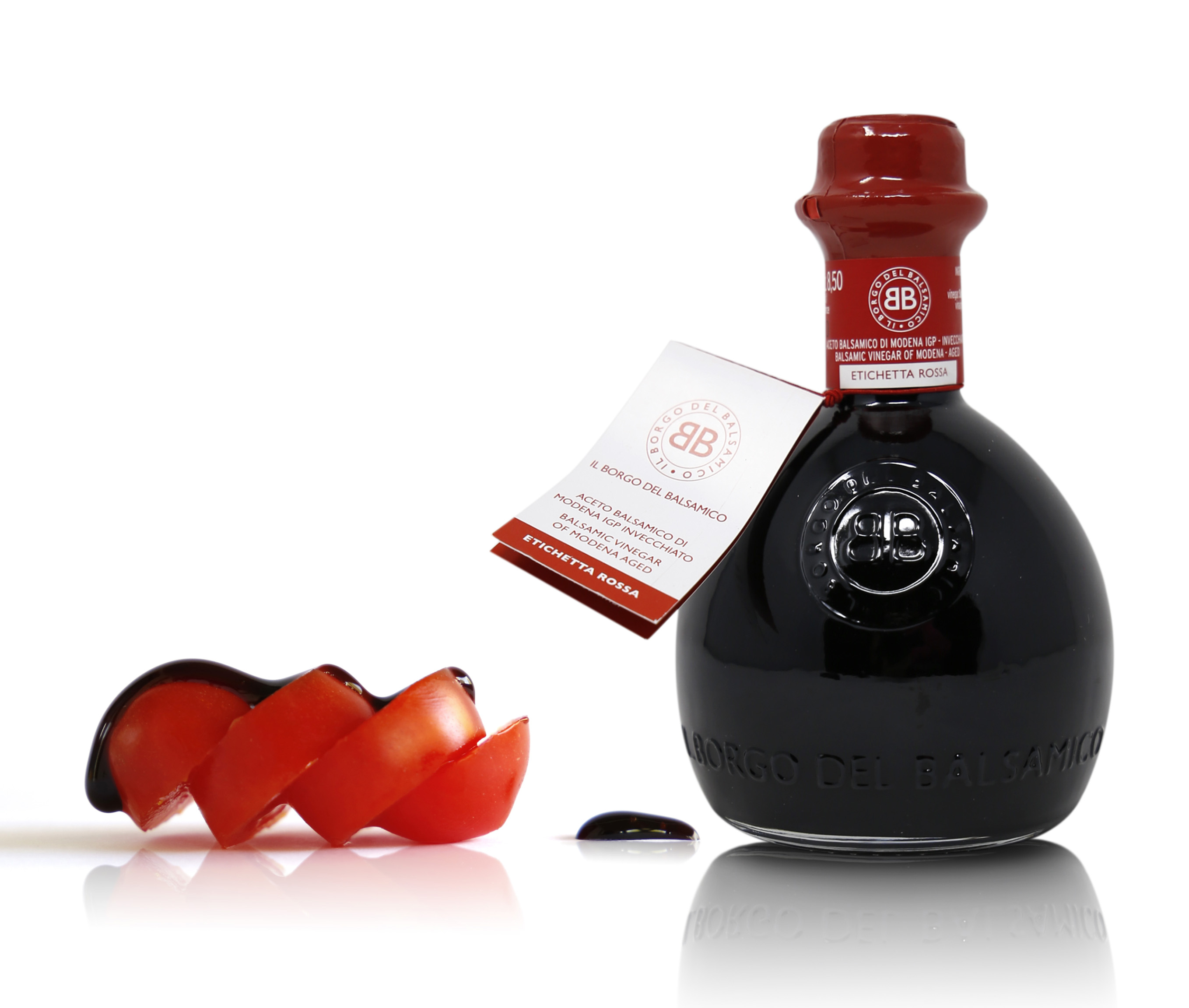 L’Aceto Balsamico di Modena del Borgo IGP etichetta rossa è indicato per ricette esclusive, sulle verdure, sulle fragole, sul gelato o sul formaggio stagionato.