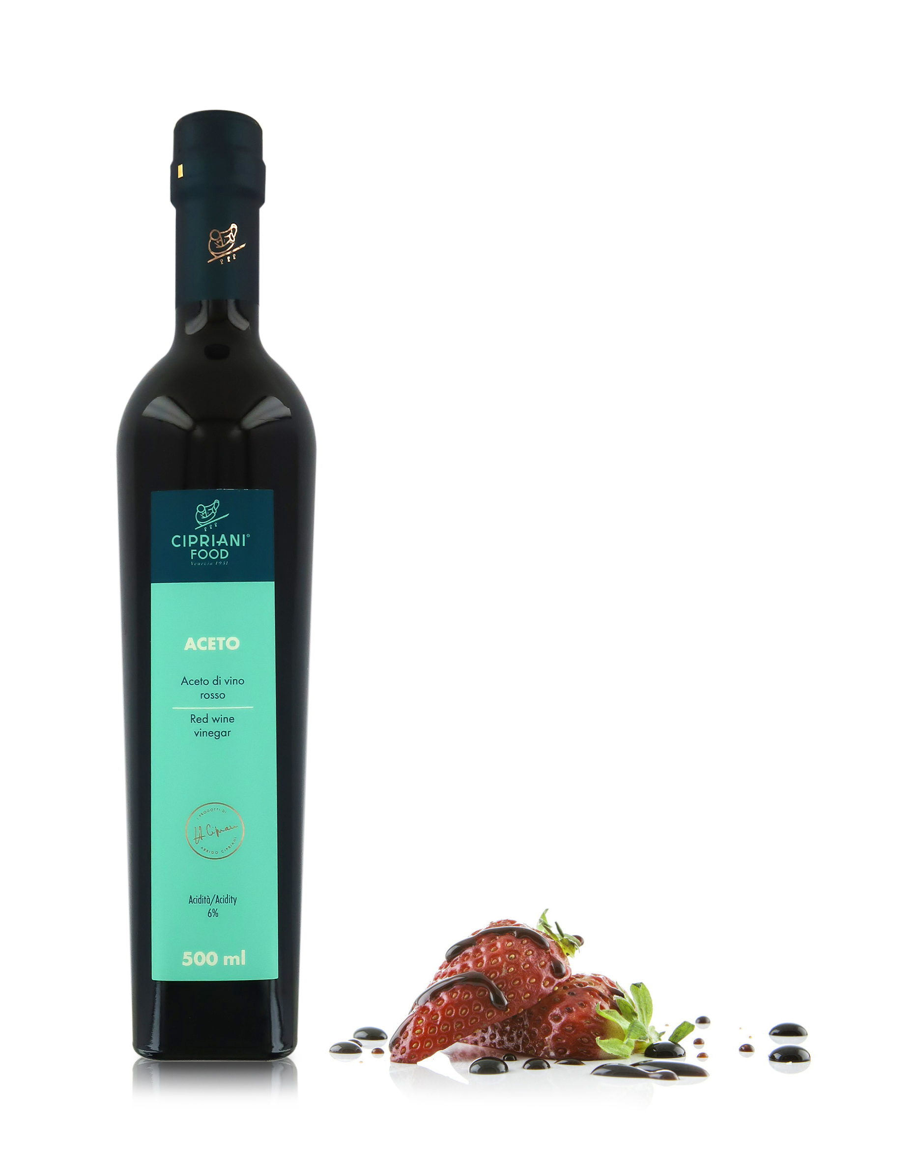 Cipriani Aceto di Vino Rosso Italiano Invecchiato in Botti di Rovere e Ottenuto da Procedimento Antico / Tradizionale, Aceto Aromatico a Bassa Acidità , 6 x 500 Ml