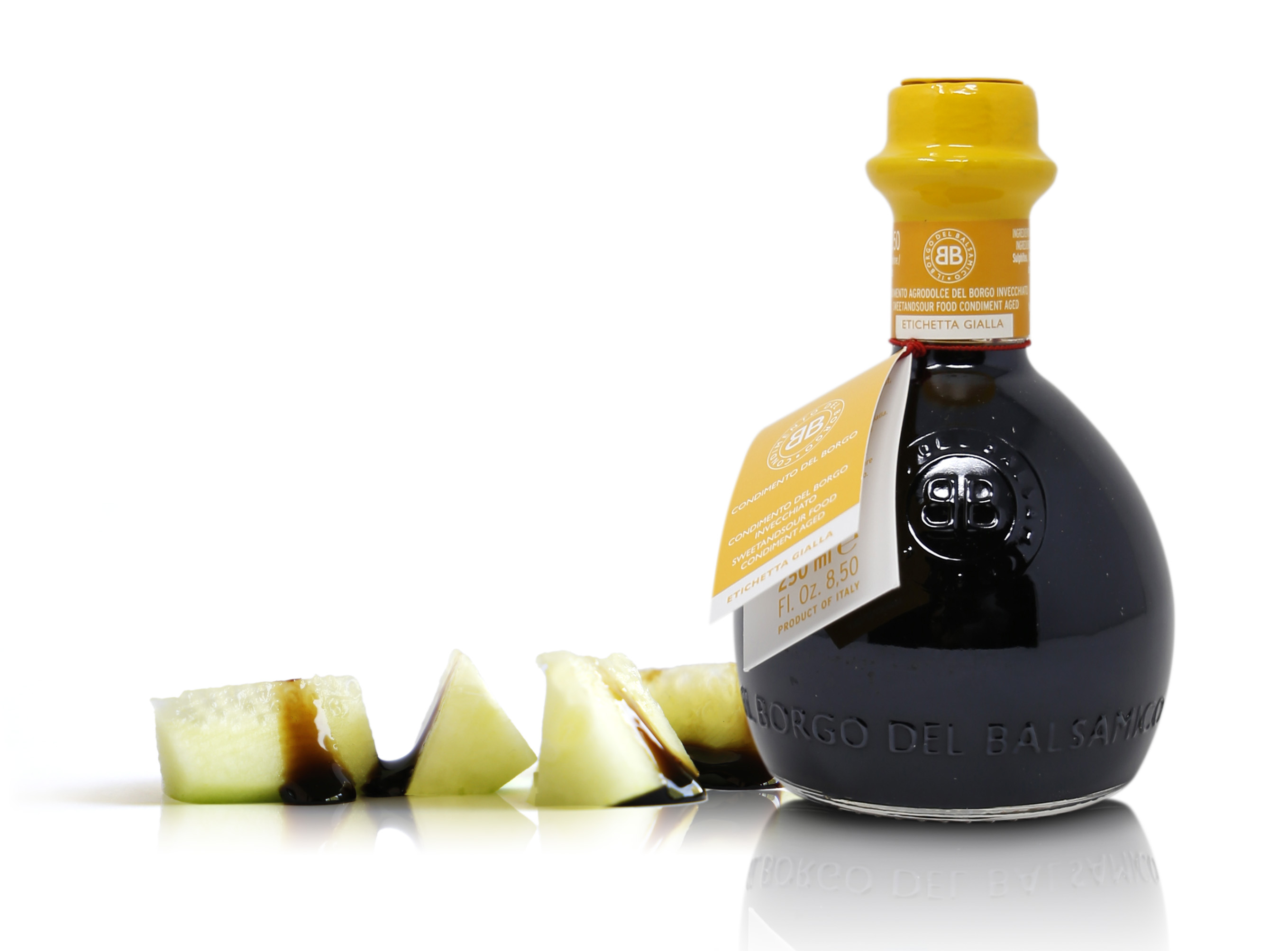 Condimento del Borgo, Etichetta gialla, invecchiato, dall'acidità inferiore al 6%. Questo pregiato condimento nasce dalla stessa passione con cui Il Borgo del Balsamico produce l’Aceto Balsamico Tradizionale di Reggio Emilia D.O.P.