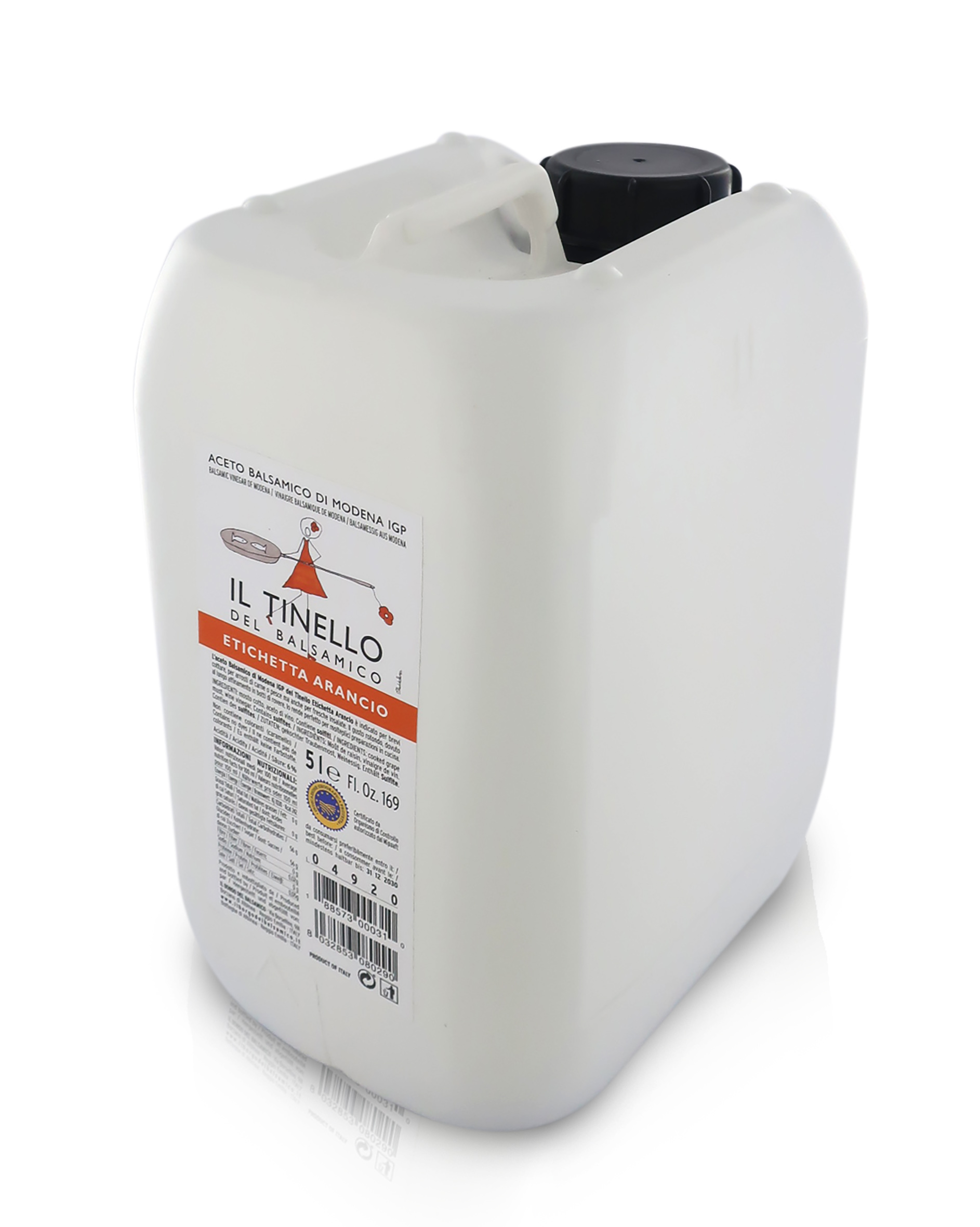 Tanica di Aceto Balsamico di Modena IGP, 5 litri , etichetta arancio