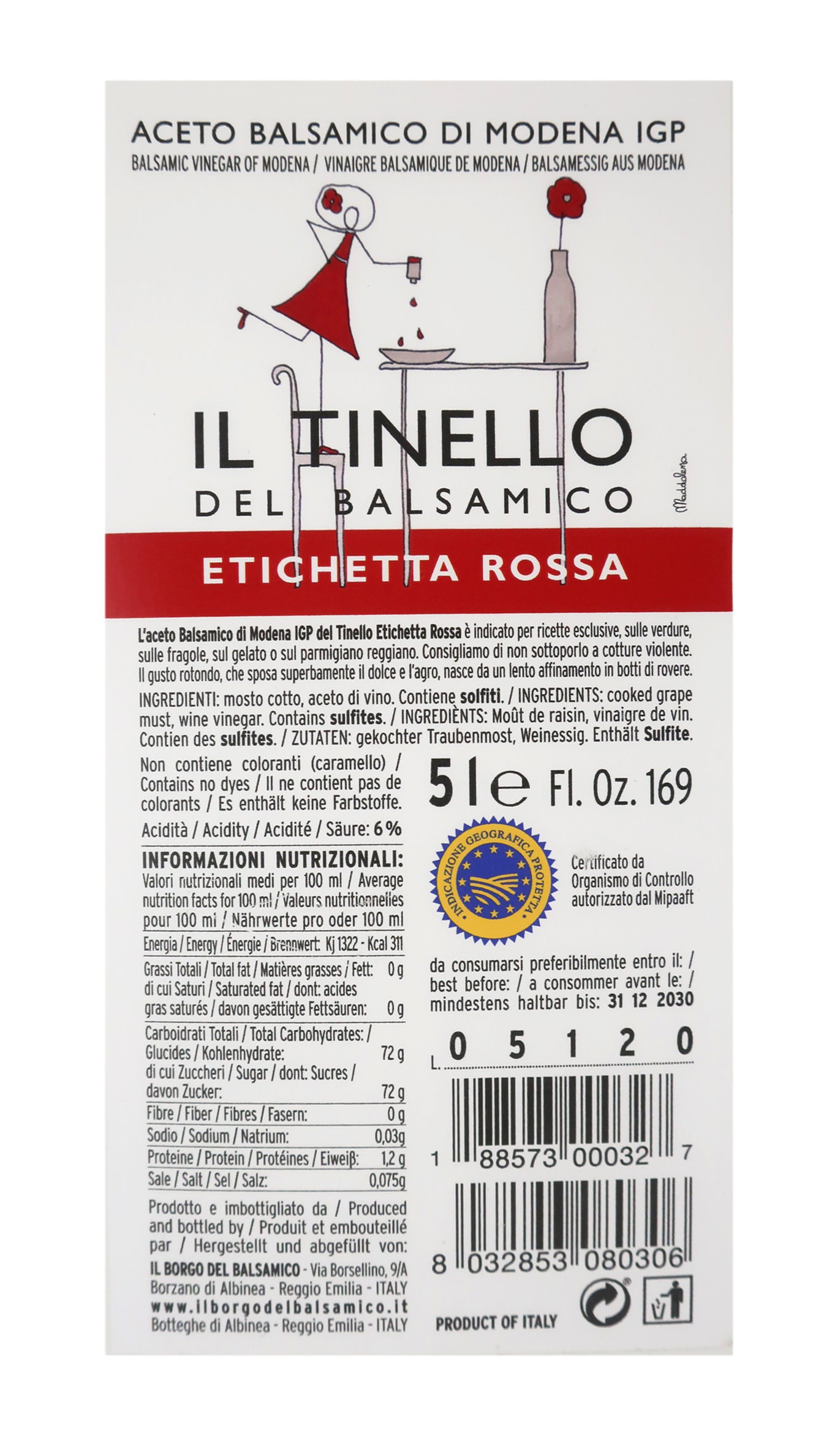 Tanica di Aceto Balsamico di Modena IGP, 5 litri , etichetta rossa