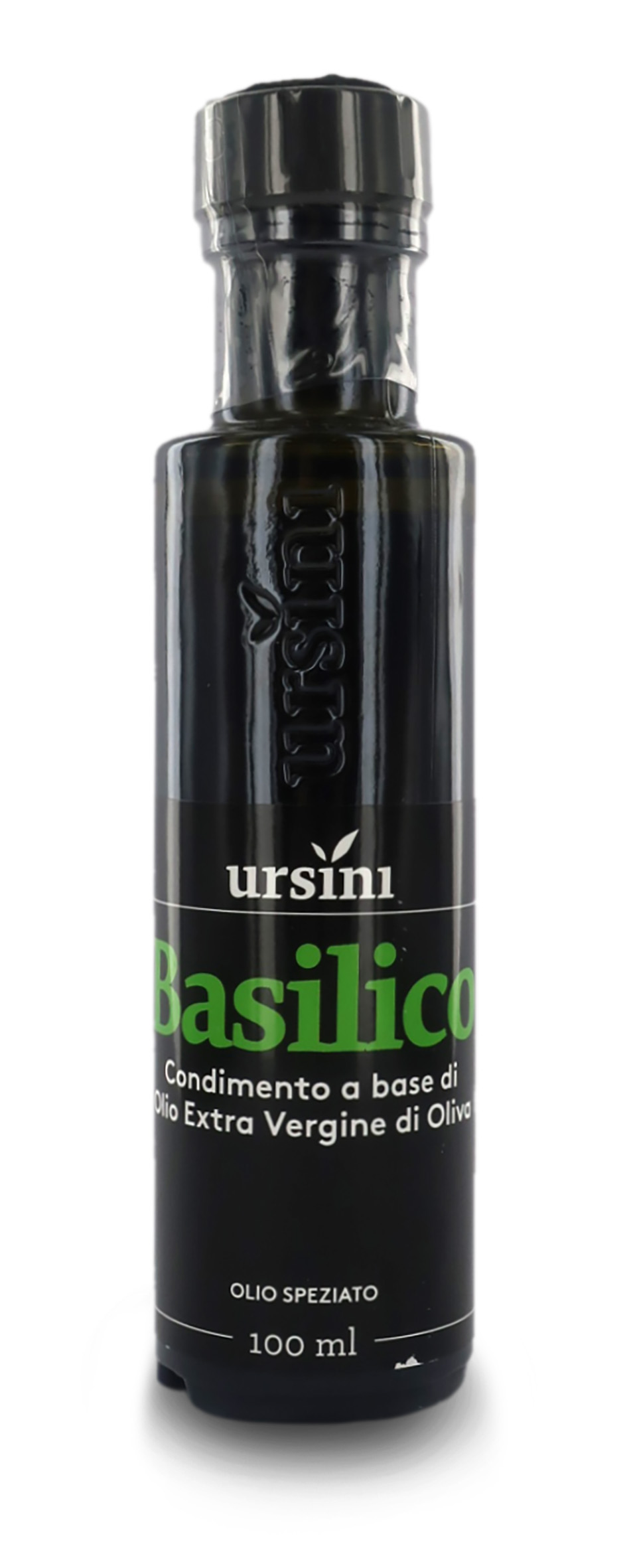Olio extra vergine di oliva aromatizzato al basilico. L'olio ricco dell'aroma inconfondibile del basilico è pensato per essere usato a crudo ed è particolarmente adatto per condire pasta in bianco, formaggi freschi, insalate di pomodori o di riso. In bottiglietta dallo stile moderno da 100ml.