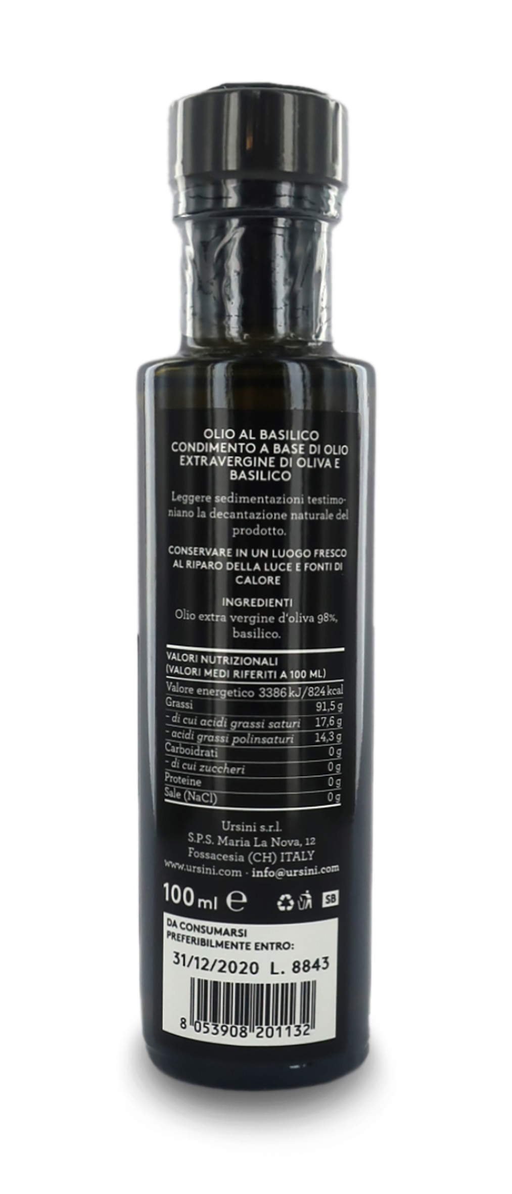 Ingredienti: olio extra vergine di oliva 98%, basilico.