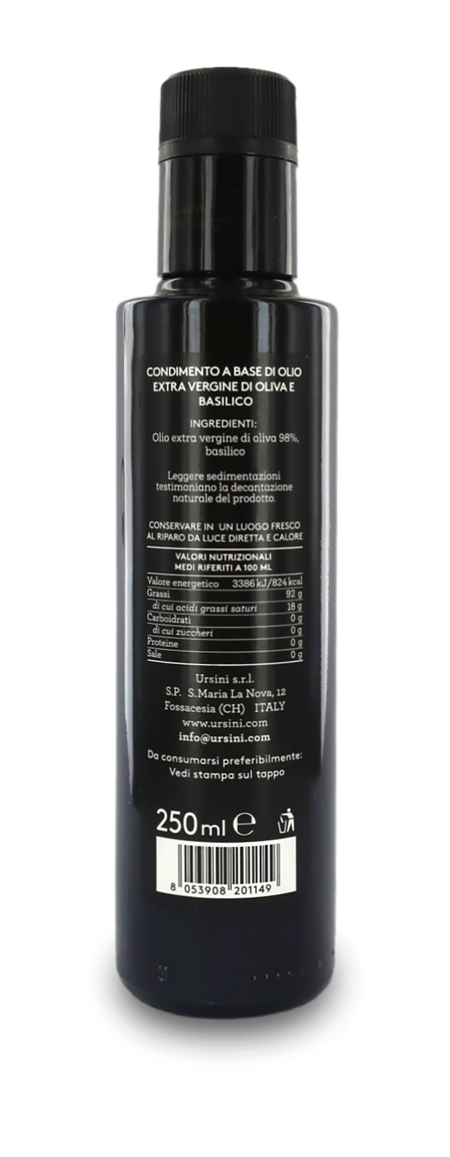 Ingredienti: olio extra vergine di oliva 98%, basilico.