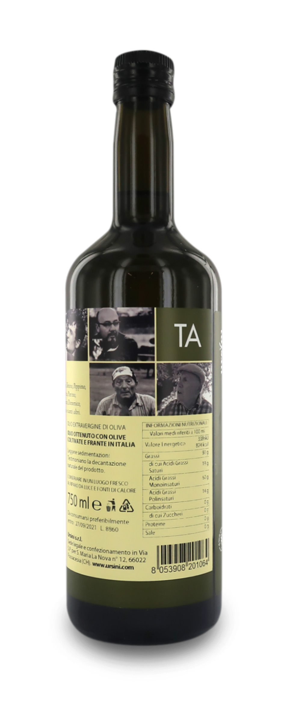 Olio ottenuto con olive coltivate e frante in Italia. Conservare in luogo fresco al riparo da luce diretta e calore.