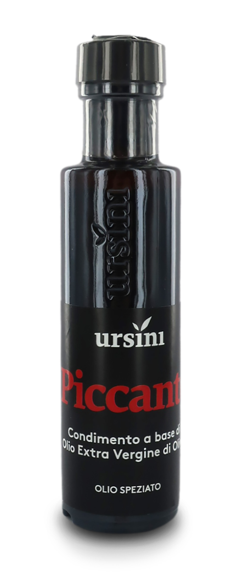 Olio extra vergine di oliva aromatizzato con peperoncino. L'olio speziato al peperoncino, da usare a crudo, è caratterizzato da una accesa piccantezza che lo rende adatto a salse rustiche, bruschette, carni, zuppe di legumi e focacce. In bottiglietta dallo stile moderno da 100ml.