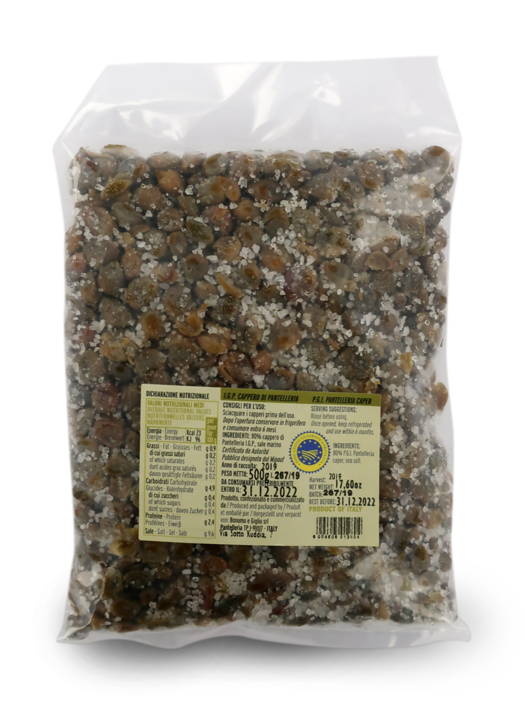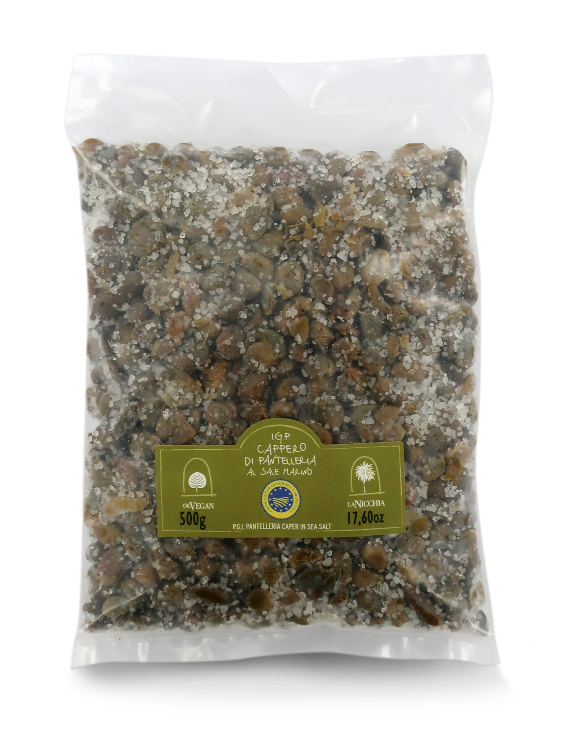 Capperi di Pantelleria certificati IGP sotto sale, calibro medio, 9/10 mm - busta 500g