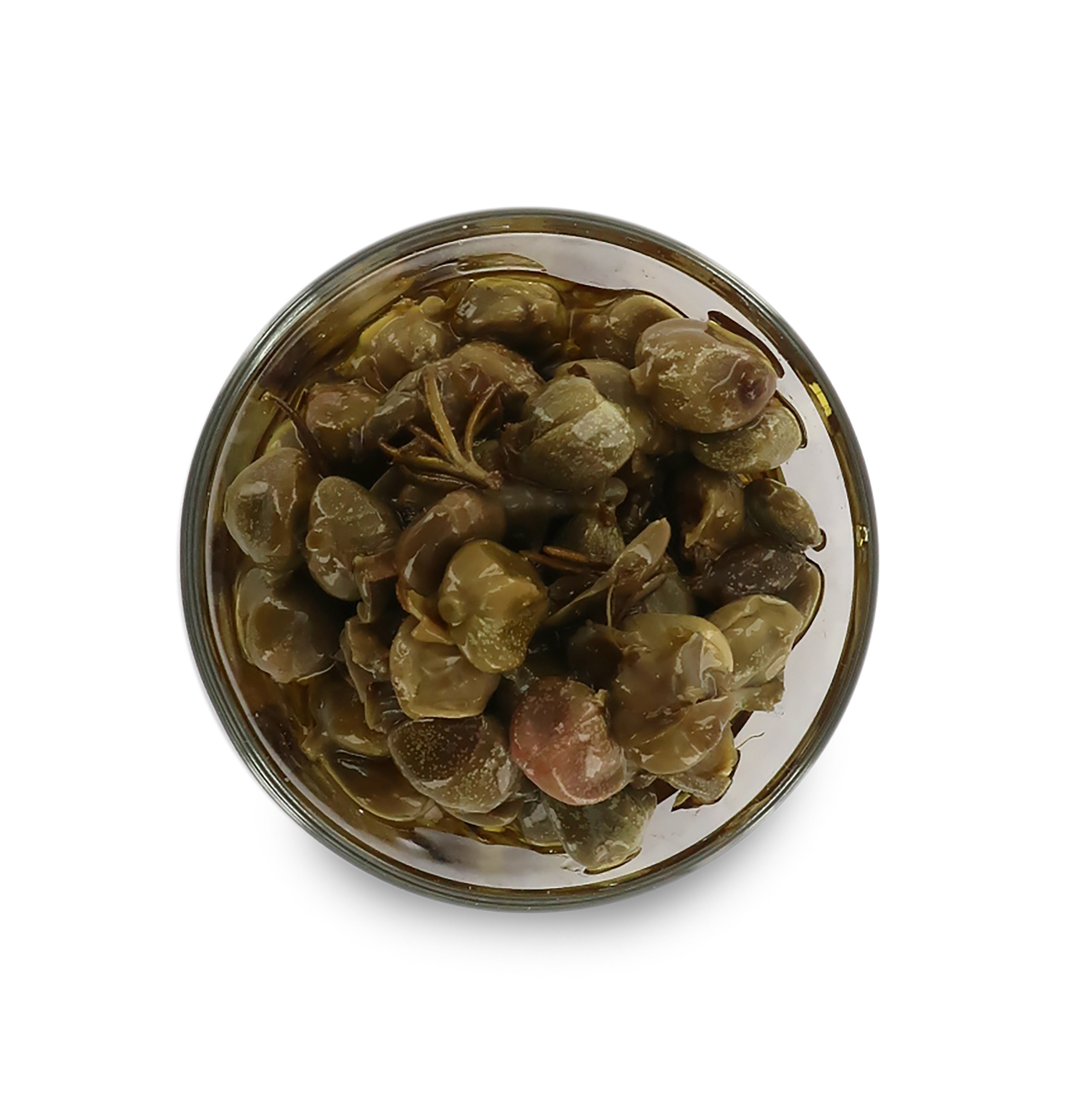 Ingredienti: 55% capperi (sale, aceto di vino), olio extravergine di oliva.