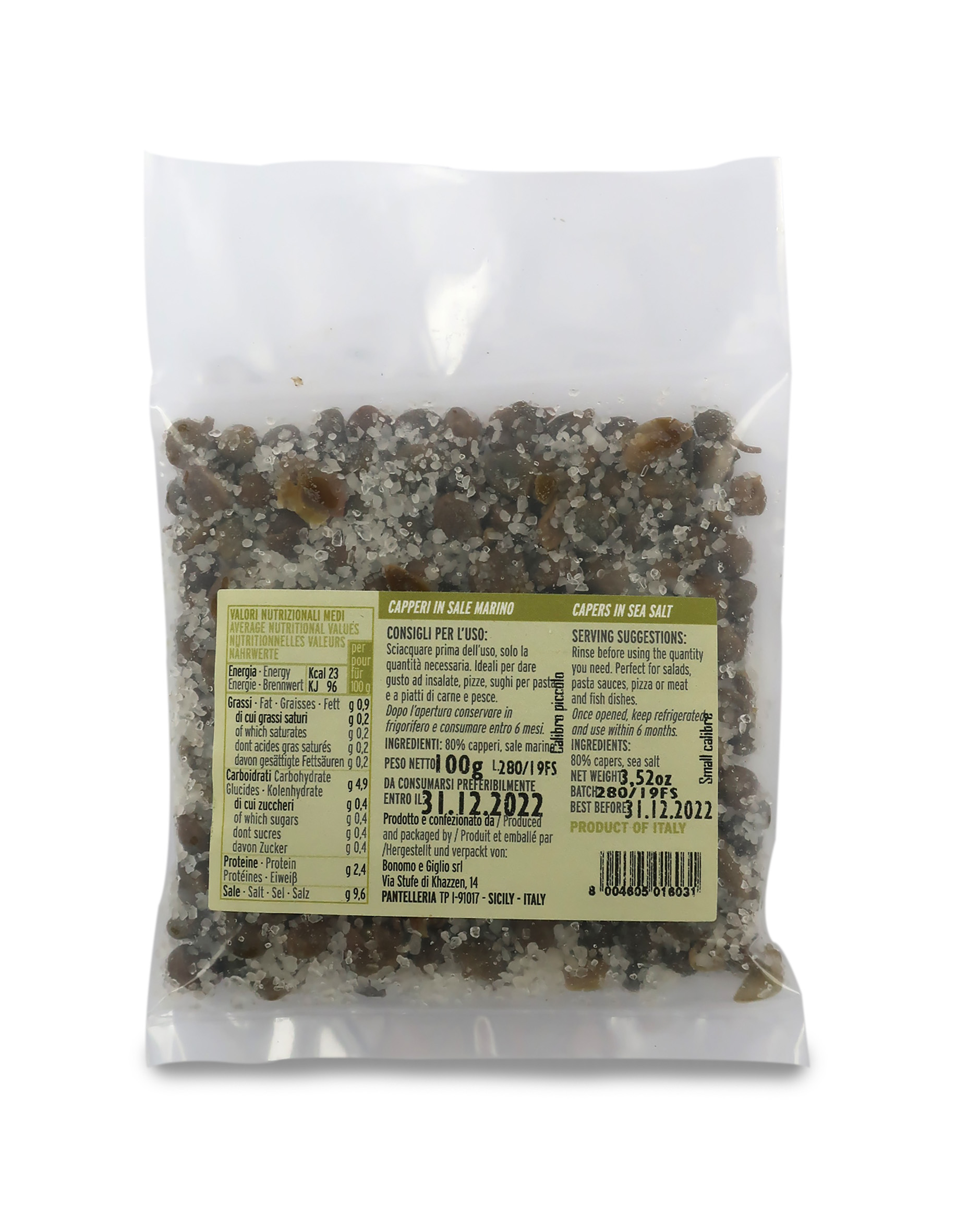 Ingredienti: 80% capperi, sale marino.