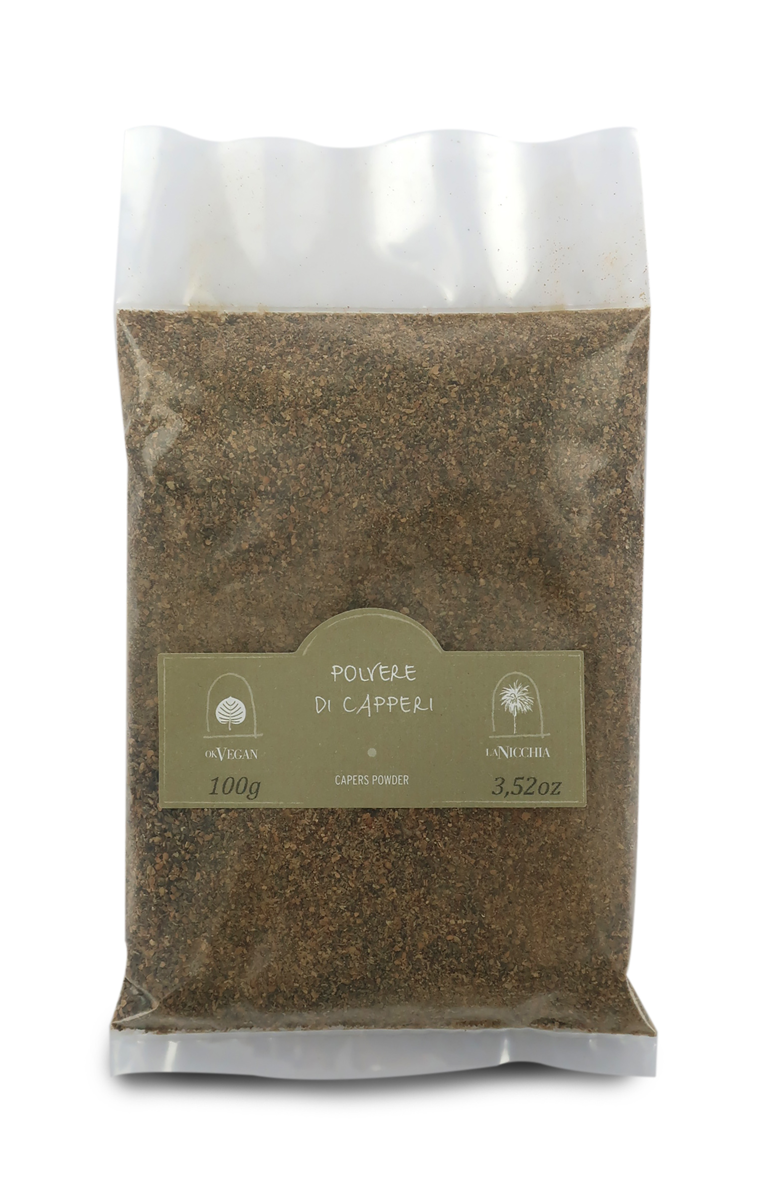 Polvere di cappero extra-fine. Come vuole la tradizione pantesca, il cappero viene consumato sulle tavole dell'isola siciliana di Pantelleria sotto varie forme. La Nicchia, capperificio storico con un'attività di oltre 70 anni, raccoglie e lavora con sapienza i capperi di grosso calibro profumati, che vengono dissalati, essiccati in parte al sole e in parte in disidratatore, per poi essere frullati e setacciati. Si ottiene una fine polvere aromatica da usare come insaporitore in una vasta gamma di preparazioni, sia calde che fredde (piatti di pesce, carne, insalate, zuppe e risotti).