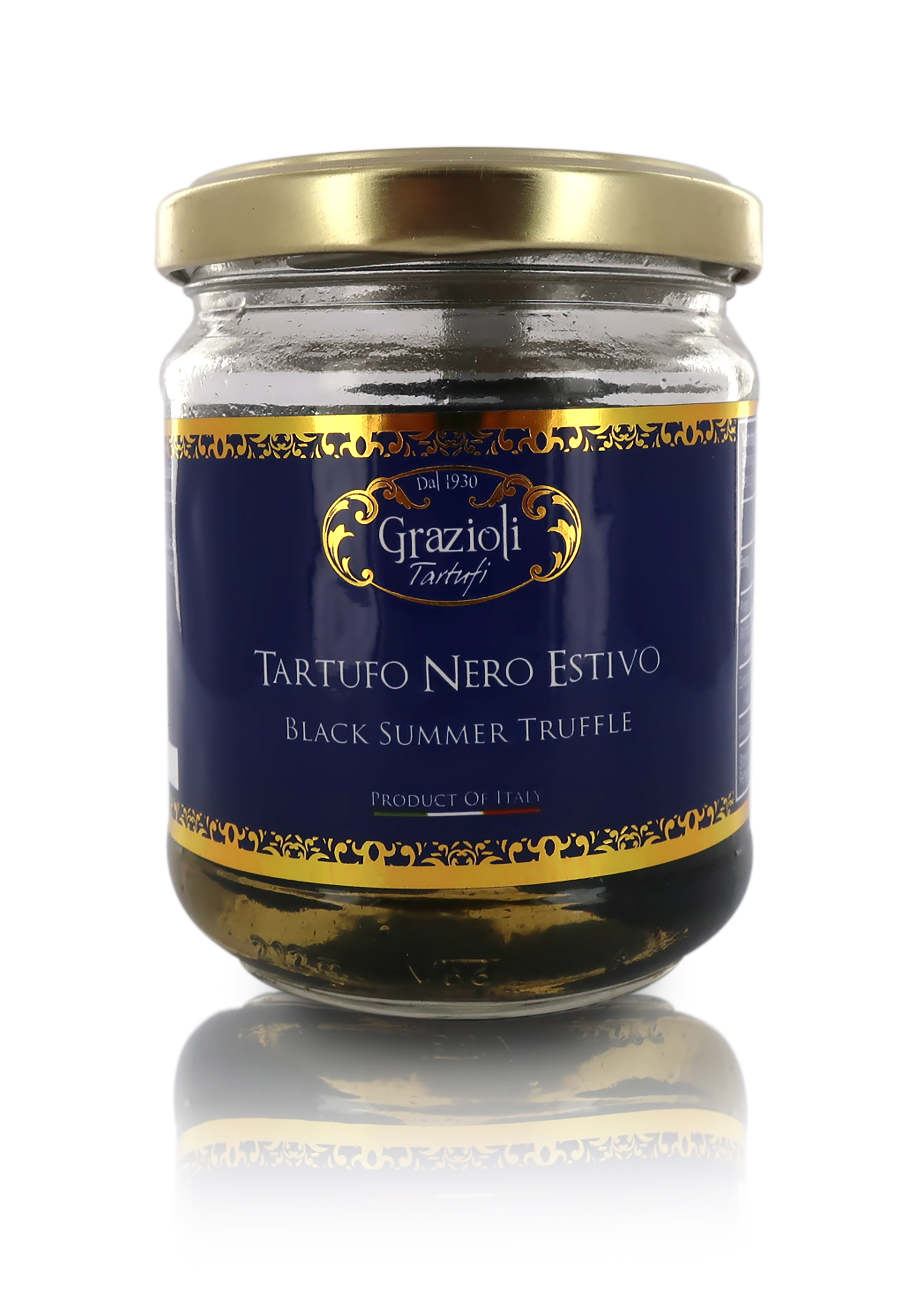 Grazioli Tartufi Tartufi Neri Estivi in Salamoia, Tartufo in Vasetto, 90g (Tuber Aestivum Vitt / Scorzoni)