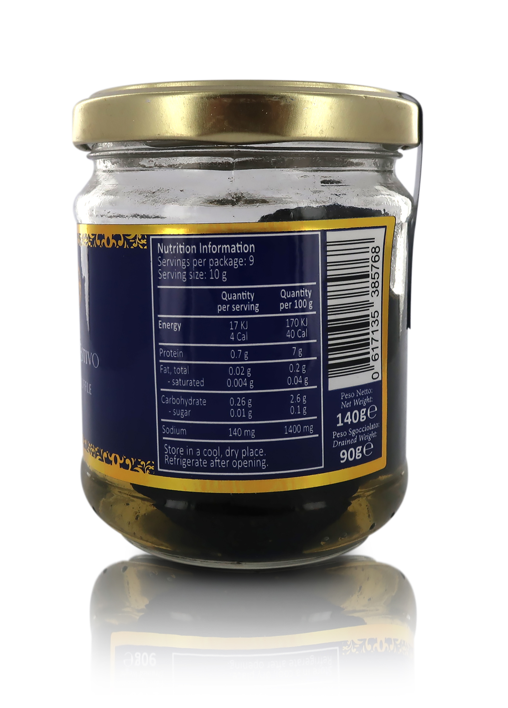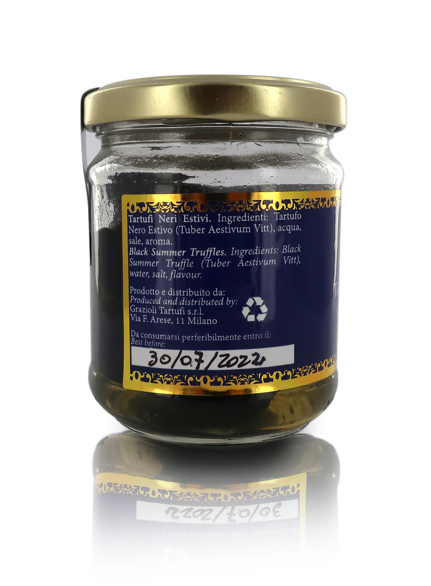 Ingredienti: tartufo nero estivo (Tuber Aestivum Vitt), acqua, sale, aroma.