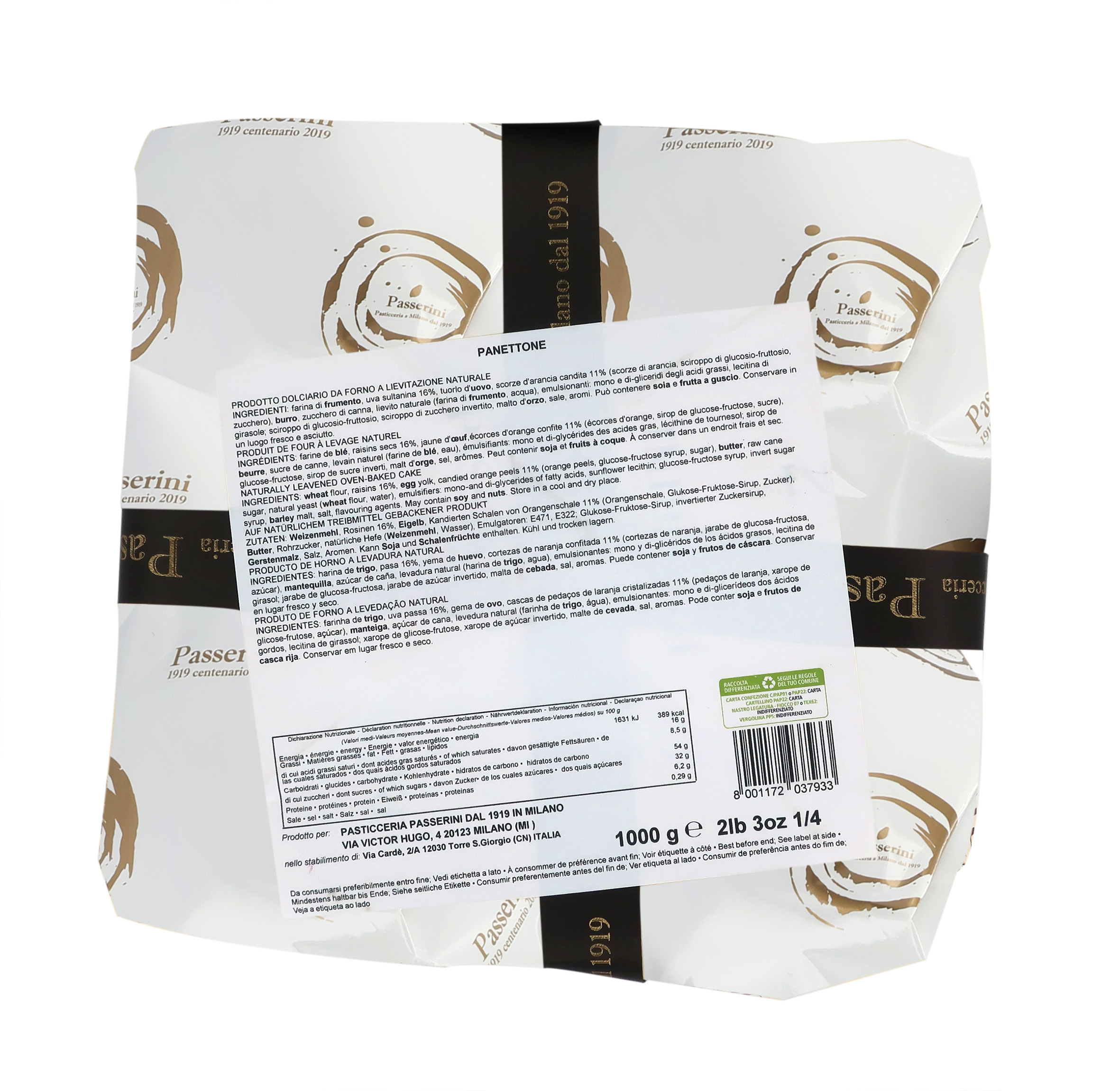 Portate il panettone tradizionale Passerini sulla vostra tavola e assaporate l’essenza del dolce natalizio milanese per eccellenza, creando un momento di gustosa convivialità con le persone a voi più care. Che sia per festeggiare Natale, Capodanno o l’Epifania, concedetevi un momento di soffice dolcezza all’insegna di un panettone profumato e gustoso, realizzato con una ricetta classica rigorosamente rispettata da Passerini, che dal 1919 delizia i palati degli amanti dei dolci più esigenti. Ingredienti di prima qualità — come farina, uova di galline allevate a terra in Italia, burro, zucchero, arancia candita e uva passa — danno vita all’irrinunciabile, iconico dolce da forno natalizio di Milano dalla naturale e lunga lievitazione. Per apprezzare al meglio il sapore di questa morbidissima prelibatezza, si consiglia di mantenerlo a temperatura ambiente per un paio d’ore prima di servirlo. Se invitati a cena da amici, quale miglior gesto se non portare questo panettone?