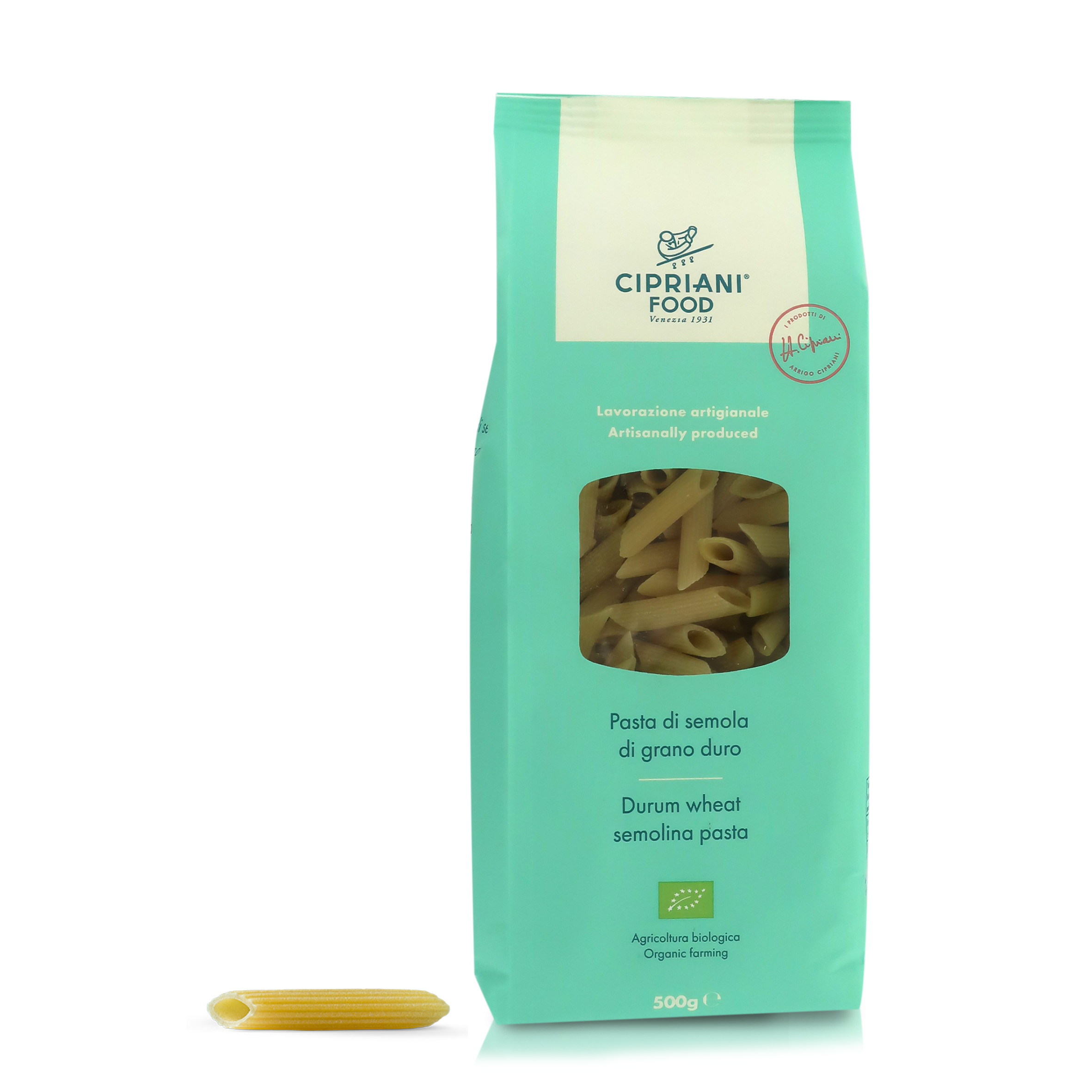 La pasta di grano duro Cipriani viene prodotta con semola biologica 100% italiana e la sua lavorazione è tale da preservare tutte le qualità nutrizionali; l’indice di proteine molto elevato dona alla pasta un’alta elasticità ed una buona tenuta in cottura. Inoltre, grazie all’utilizzo della trafila di bronzo si ottiene un prodotto dalla texture ruvida che favorisce l’assorbimento del condimento.