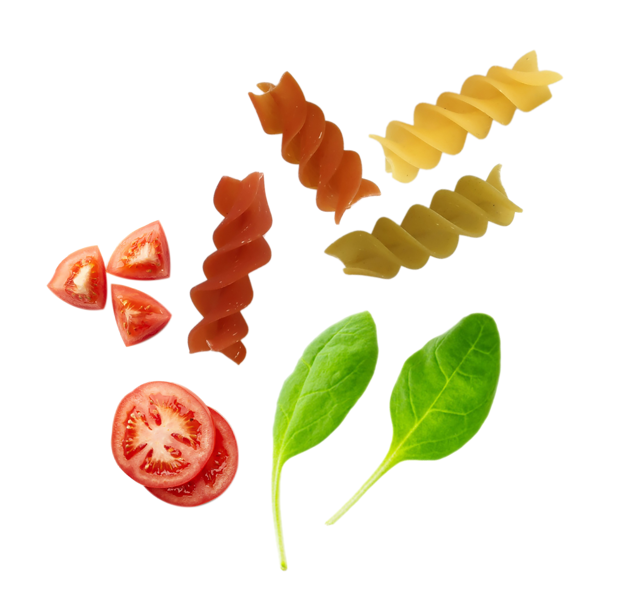 Ingredienti: Semola di grano duro, Acqua, Pomodoro in polvere, Bietola in polvere, Spinaci in polvere.