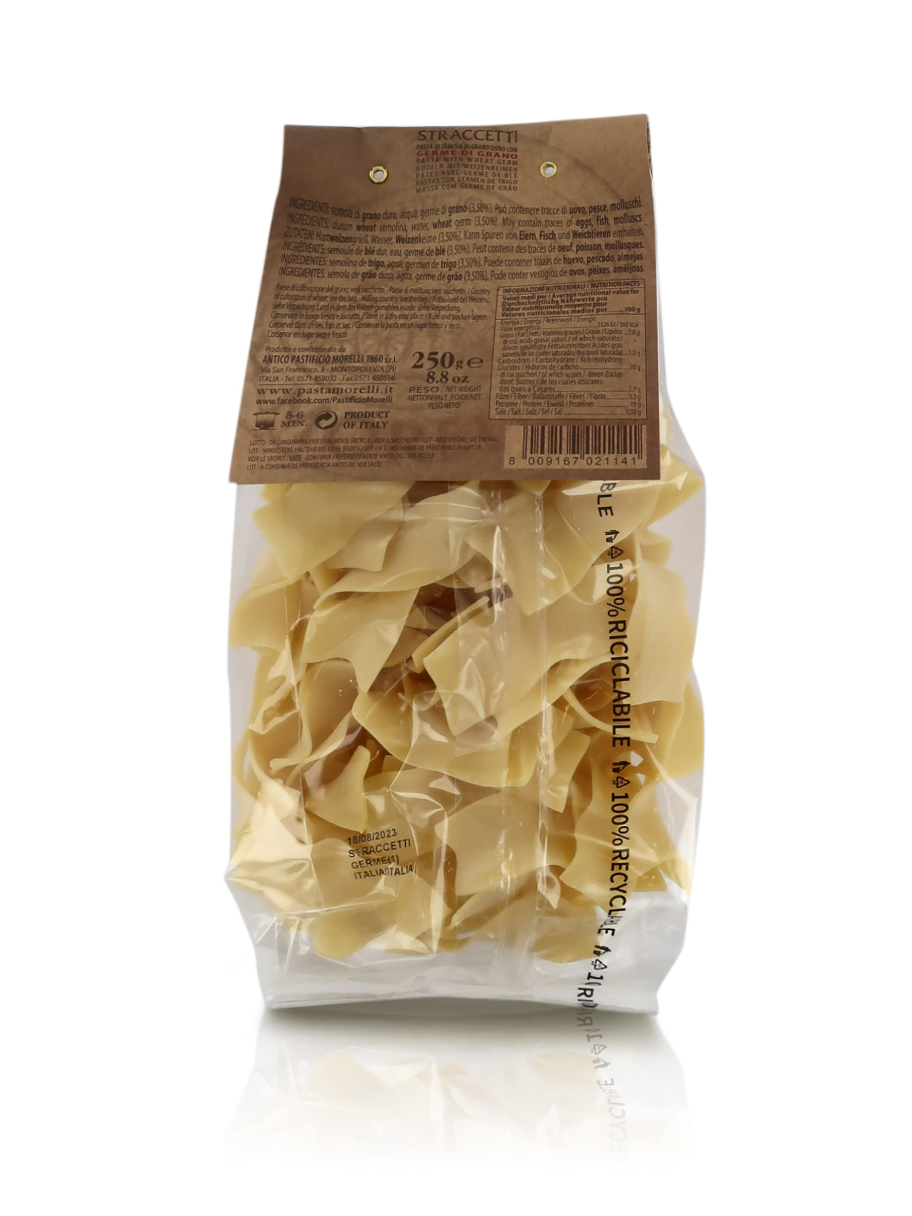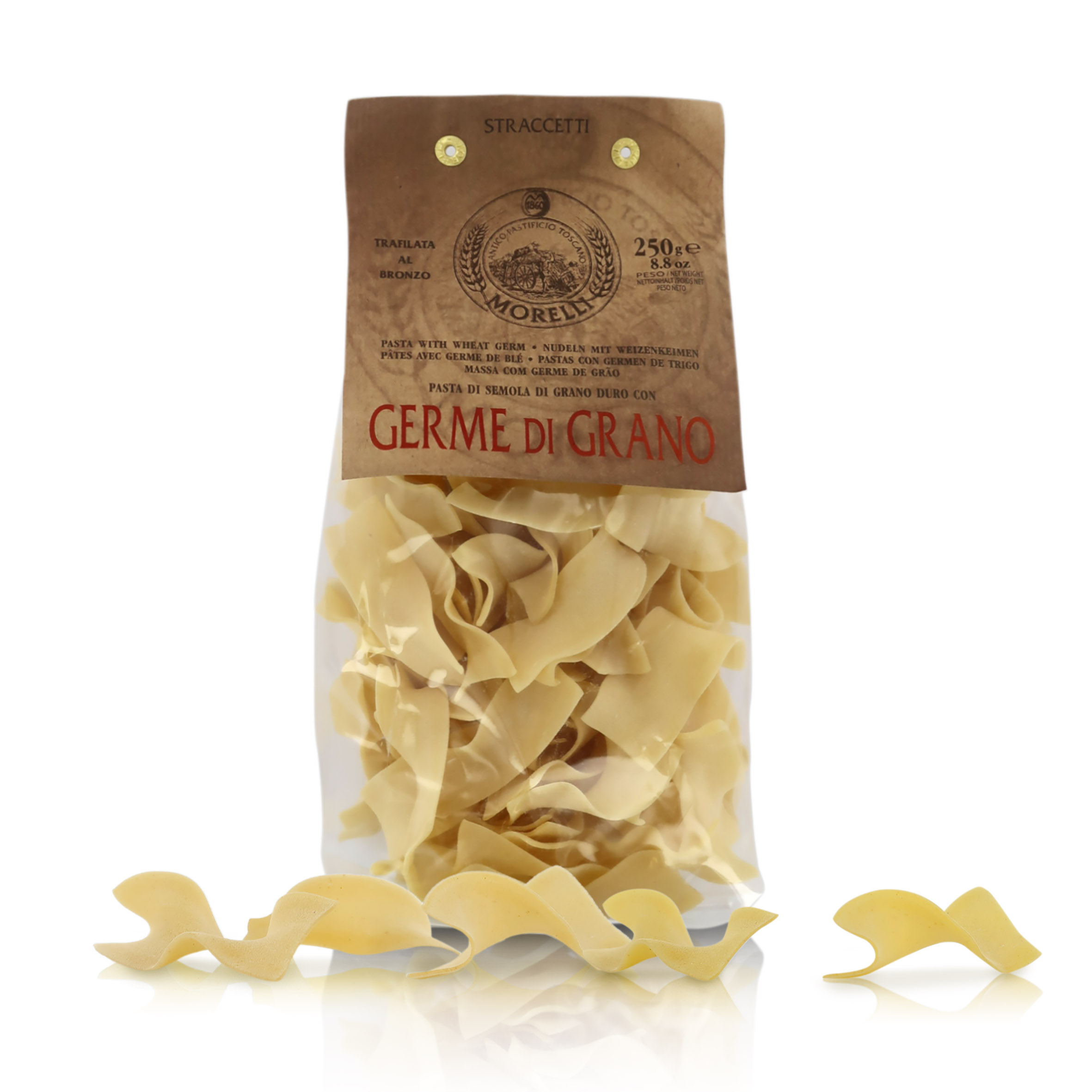 Straccetti, pasta al germe di grano, 6 confezioni da 250 grammi.