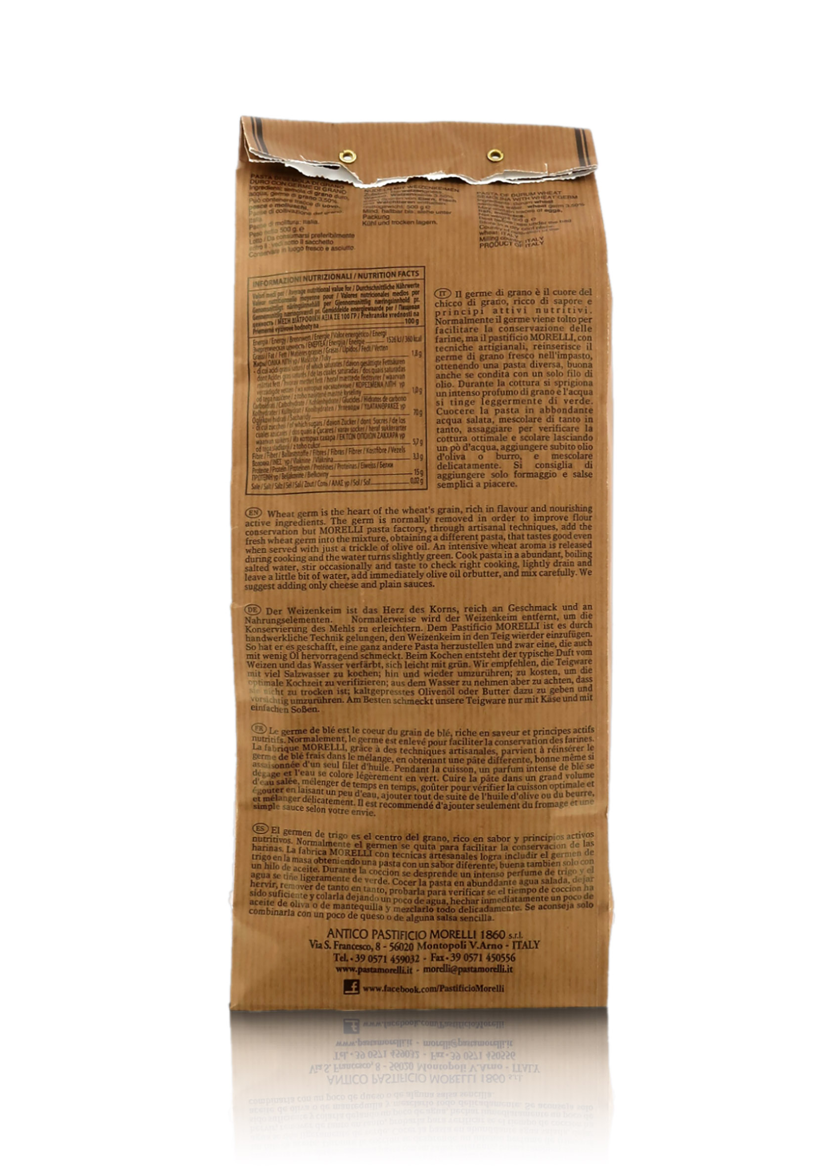 La pasta Morelli è preparata artigianalmente in un pastificio a gestione familiare in provincia di Pisa, fondato nel 1860. Ormai da ben 5 generazioni, la pasta viene preparata usando ottime semole di grano duro e tecniche classiche, che includono trafilatura al bronzo ed essiccatura a basse temperature, nel pieno rispetto della tradizione. Fiore all'occhiello della produzione Morelli è la pasta al germe di grano, che impiega un ingrediente naturale solitamente scartato, che la lavorazione artigianale, invece, consente di reintrodurre nell'impasto, donando alla pasta un gusto e un aroma molto particolari. La gamma di paste Morelli include: pasta al germe di grano, le tipicità regionali, la pasta all'uovo e germe di grano, la pasta integrale di filiera Toscana e integrale Senatore Cappelli, pasta di legumi, pasta senza glutine, grani antichi, farro e kamut, pasta aromatizzata monogusto, multicolore e articoli da regalo.