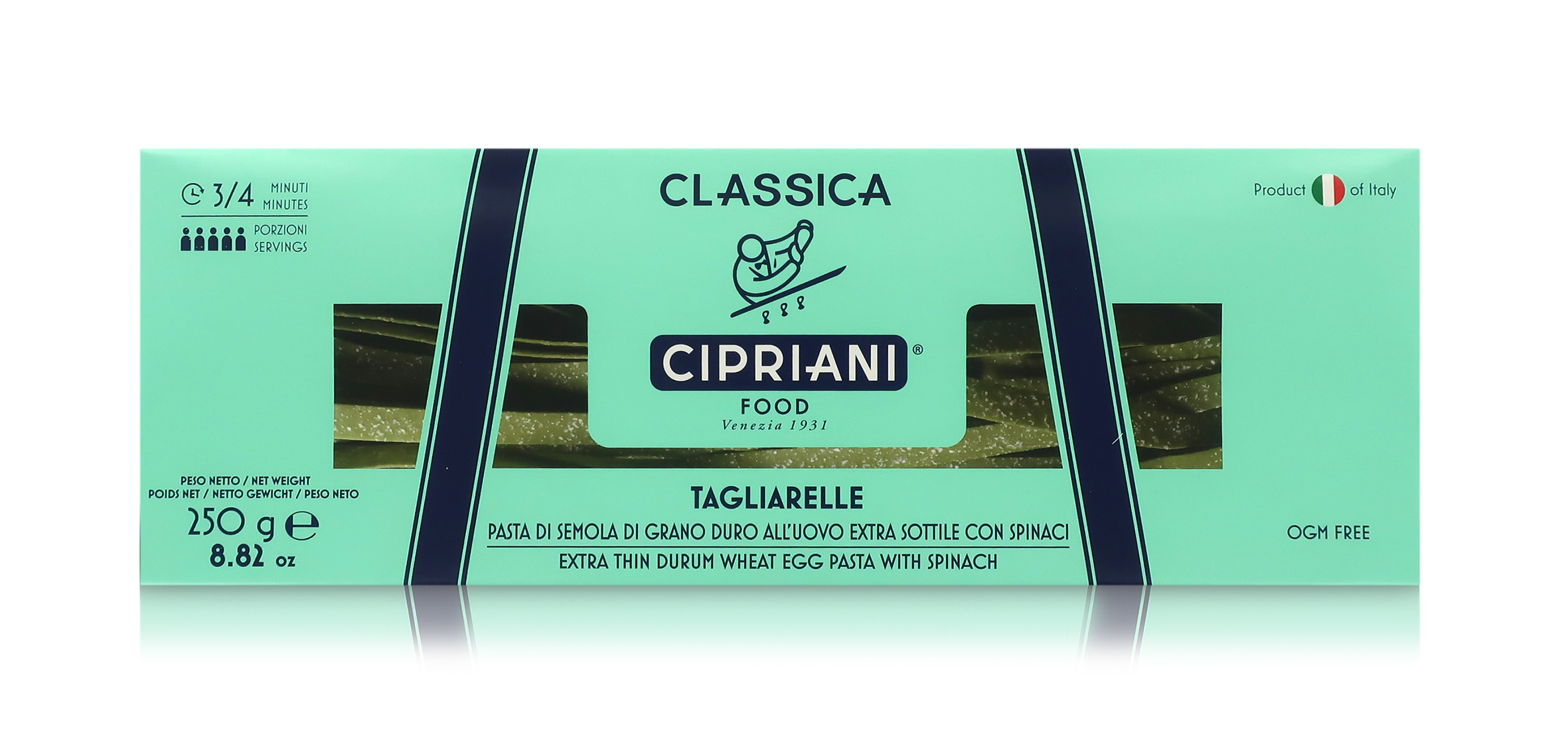 Tagliarelle Cipriani agli spinaci: le tagliatelle originali di Arrigo Cipriani si tingono di verde in modo naturale, regalando colore e sapore anche ai piatti più semplici. All’Harry’s Bar si possono gustare gratinate con un ragù di vitello. Ora è un gioco da ragazzi apprezzarle anche nella comodità di casa propria.