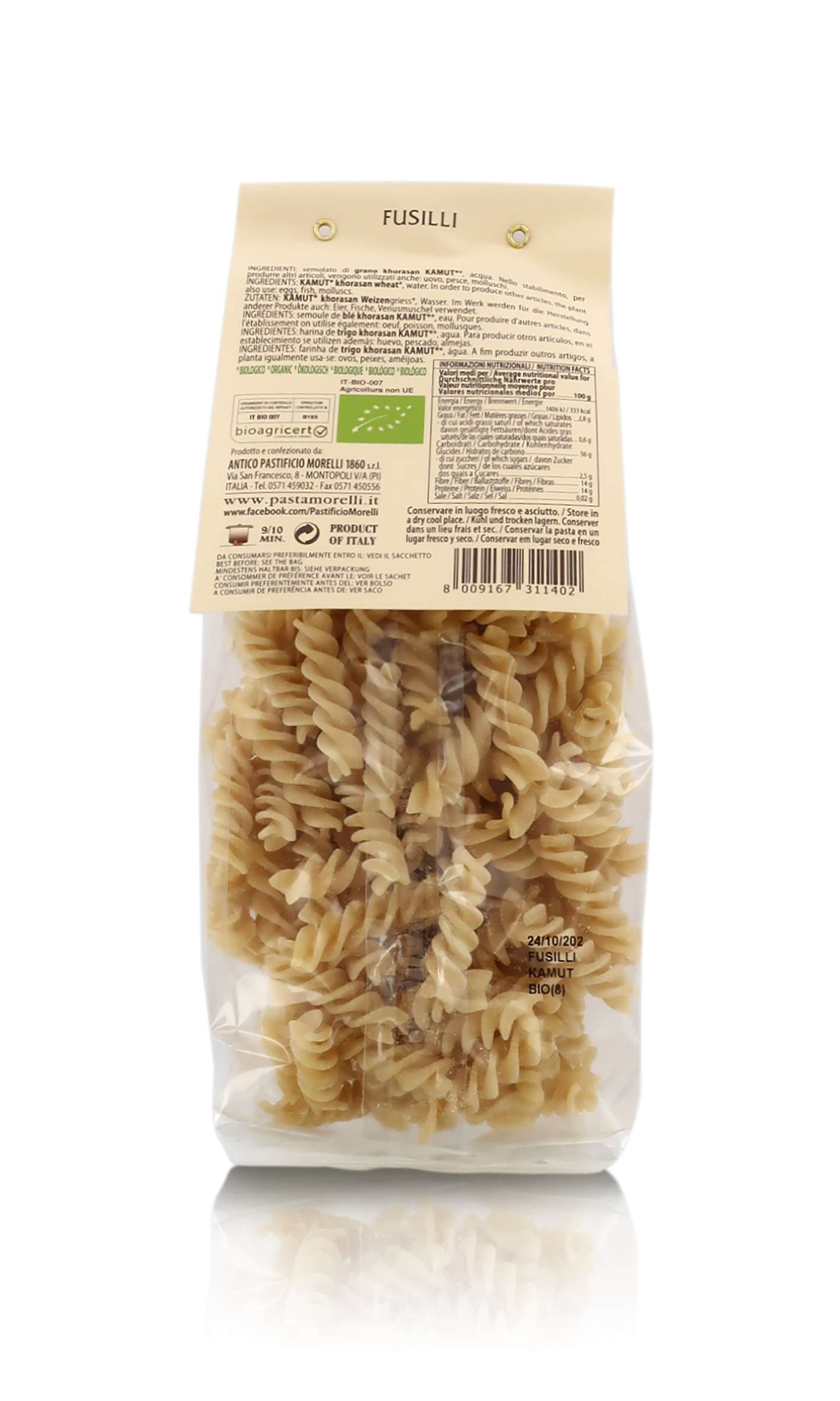 Ingredienti: farina integrale di grano Khorasan Kamut® biologico, acqua.