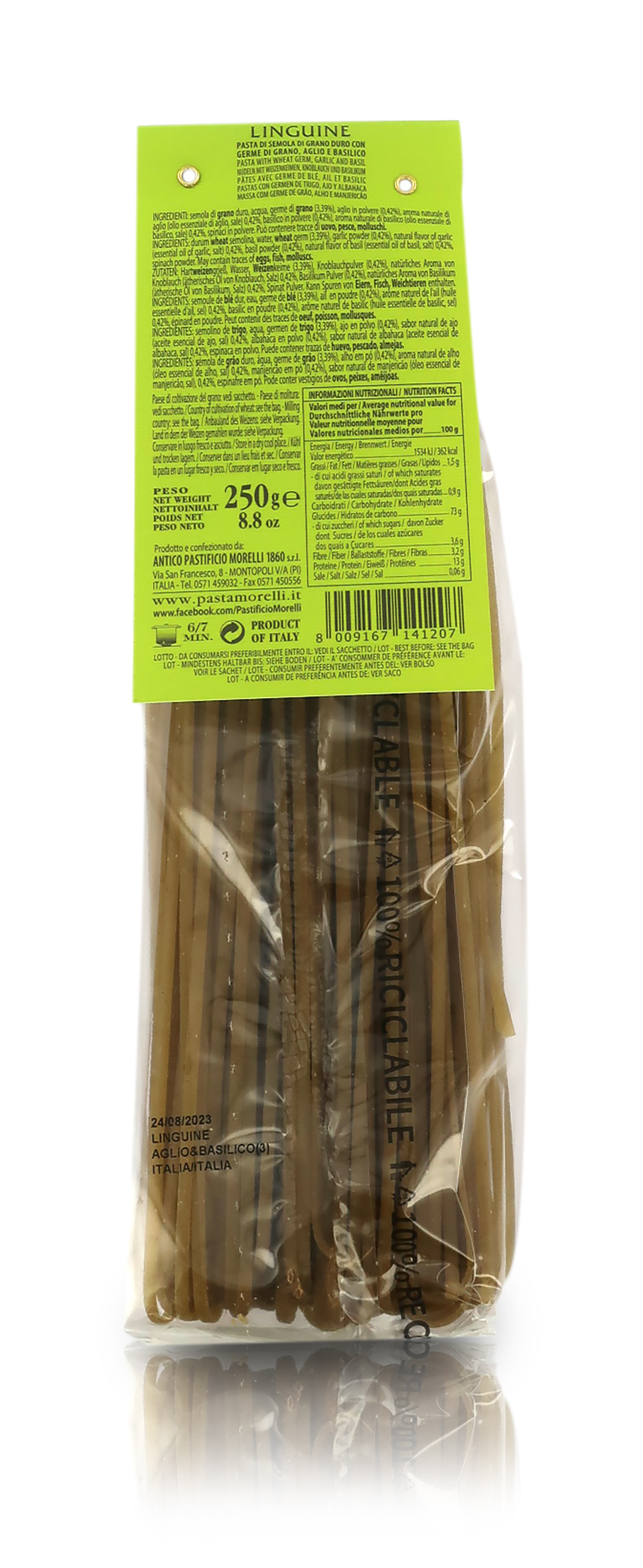 Linguine aglio e basilico, pasta aromatizzata, 8 confezioni da 250 grammi