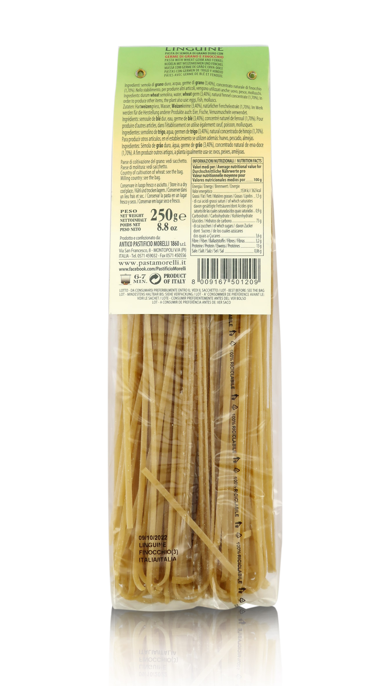Linguine al finocchio, pasta aromatizzata, 8 confezioni da 250 grammi.
