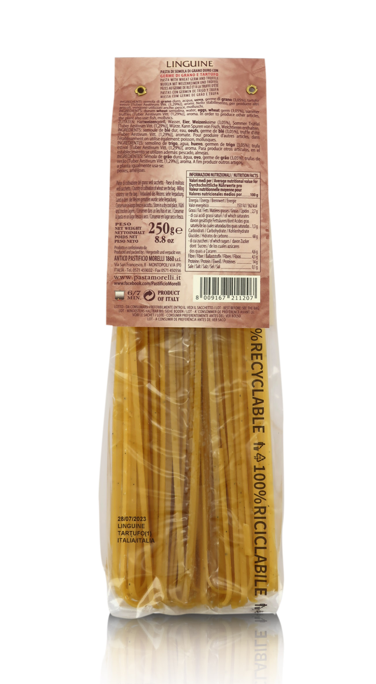 Ingredienti: Semola di grano duro, Acqua, Uova, Germe di grano, Tartufo nero estivo, Aromi.